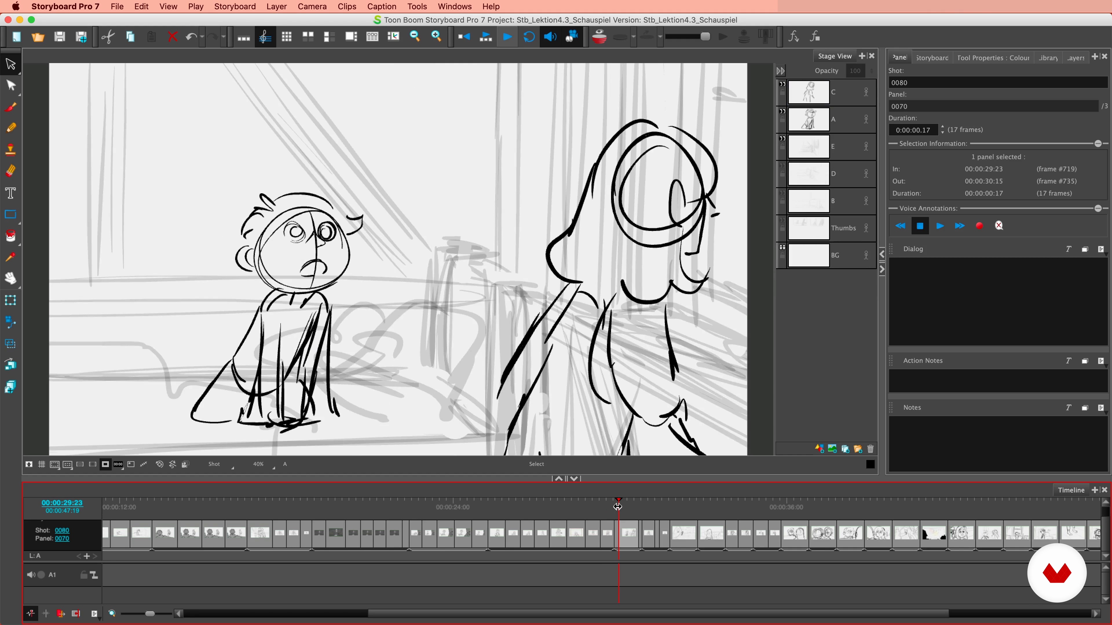 “Aktorstwo i związek bohaterów W tej lekcji skupimy się na aktorstwie. Słyszałem to wiele razy w największych amerykańskich studiach animatorzy i artyści storyboardów mają możliwość: Weź udział w kursach aktorskich i improwizacji. Brałem też kurs aktorski w Lipsku, co było dla mnie ogromnym wyzwaniem. Nie chciałem iść po pierwszej godzinie. To zupełnie inne wyzwanie reprezentować coś ciałem i twarzą lub mieć zdolność aby móc to sobie wyobrazić i narysować. Na lekcjach aktorstwa uczysz się wielu przydatnych rzeczy. Uczysz się stawiać się w sytuacji postaci i myśleć o rzeczach, które są oczywi...”