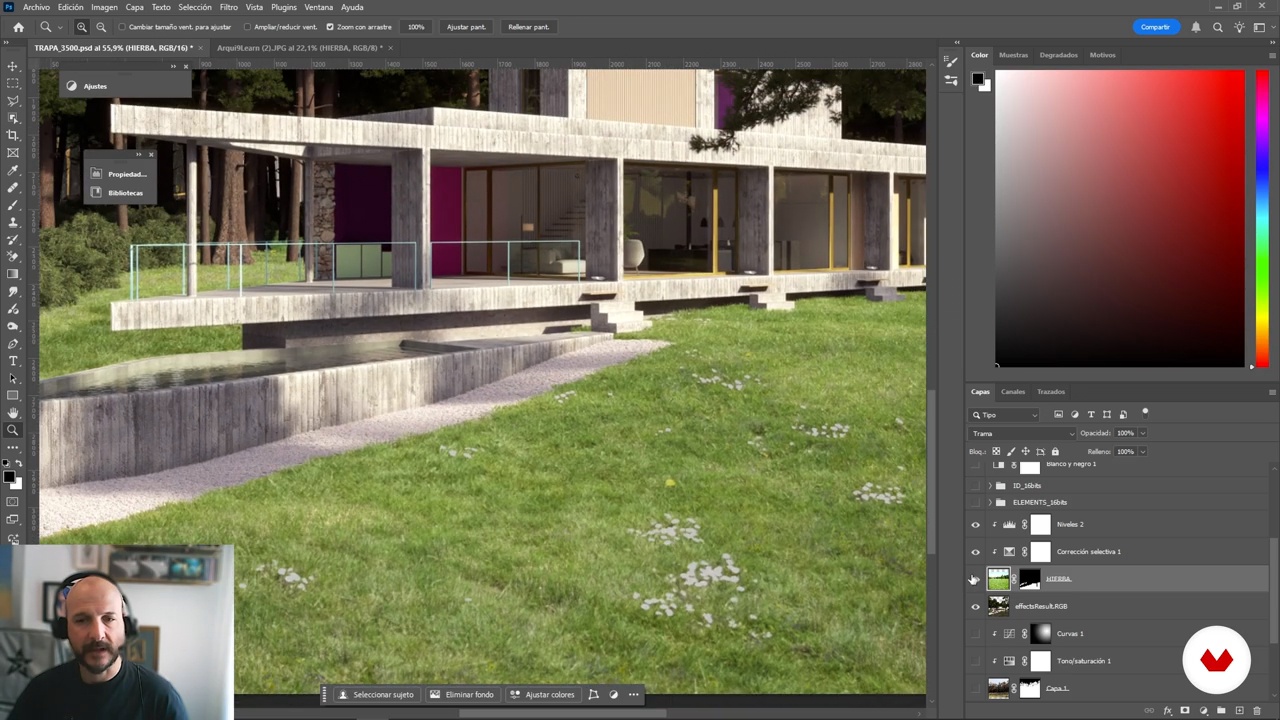 Na tej lekcji wideo Phrame porusza temat: Naprawa trawników za pomocą sztucznej inteligencji, która stanowi część kursu na platformie Domestika: Tworzenie obrazów dla ArchVIZ przy użyciu sztucznej inteligencji i programu Photoshop. Kompozycja i projekt dla ArchVIZ z wykorzystaniem sztucznej inteligencji, Photoshopa i nowoczesnych technik dla innowacyjnych projektów kreatywnych.