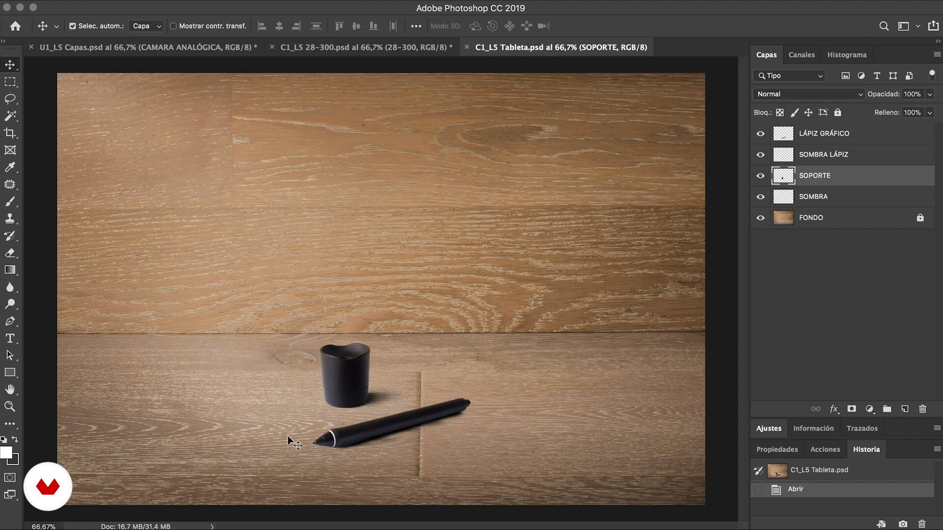 “Photoshop dla fotografów Kurs 1 Lekcja 5 Praca z wieloma oknami Często będziesz musiał pracować z wieloma oknami. W tej lekcji nauczysz się robić to w łatwy i intuicyjny sposób. Zobaczmy. Teraz, gdy wiesz trochę więcej o zarządzaniu warstwami, w tej jednostce będziesz wiedział, jak importować elementy z innych plików. Aby to zrobić, pierwszą rzeczą, którą zrobisz, jest przejście do Plik, Otwórz. Błyskotliwy. I otwórz materiały do tej lekcji. Idealny. Przed nami nasza kompozycja Pamiętaj, że jedna z ostatnich rzeczy, które zrobiliśmy łączy je. Połącz grupy. Po co? Żeby poruszali się w tym sa...”