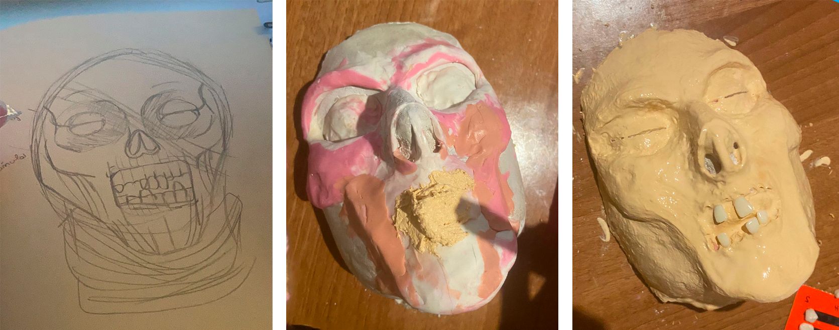 Para hacer el maquillaje de esta fotografía realicé una prótesis a medida de rostro completo desde 0 modelada a partir de una face cast (reproducción de mi rostro en yeso) La prótesis está hecha de una mezcla de látex líquido y harina y pintada a mano.