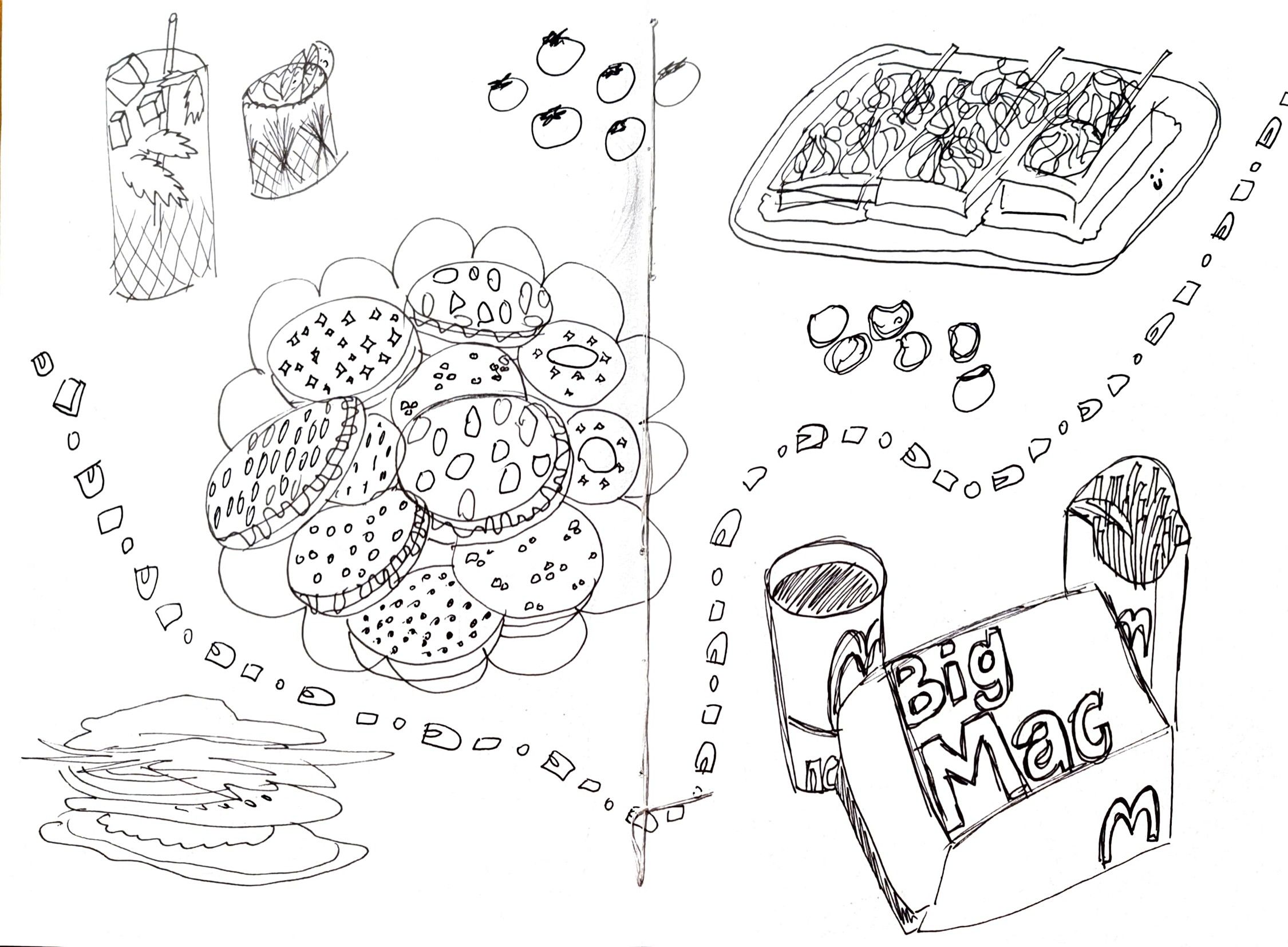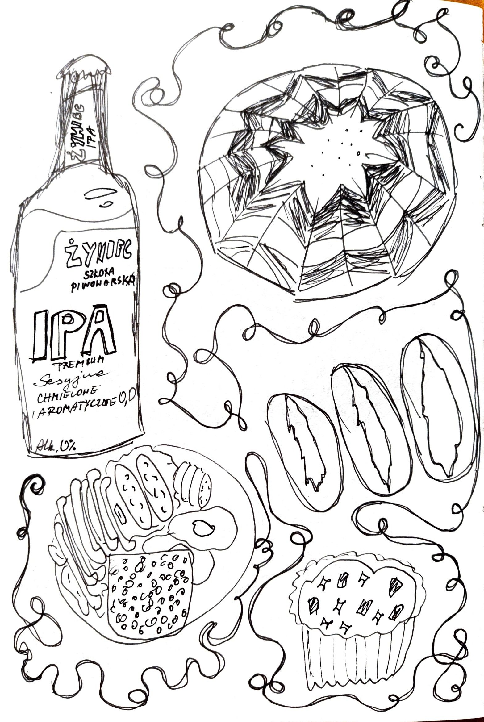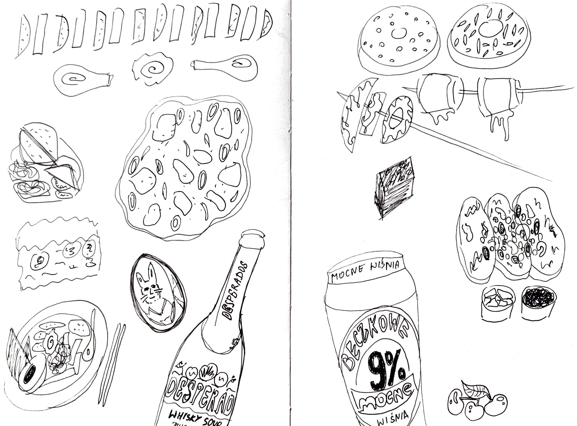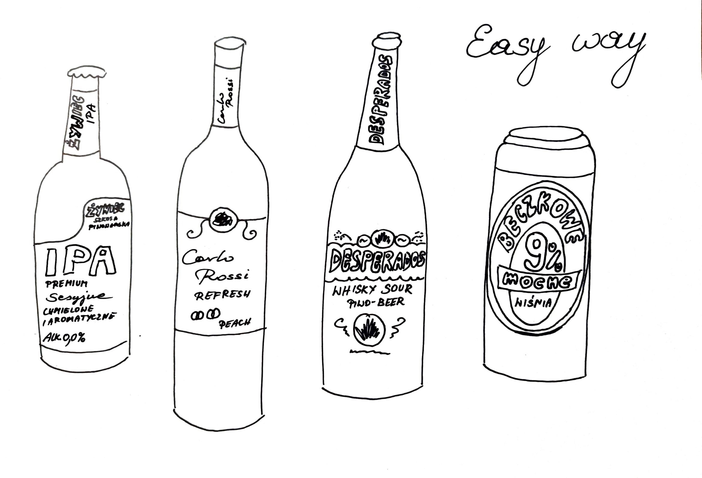 My idea was to draw pictures of food that I took during last two years. Seeing them made me think about my past a lot, every meal was connected with some great memory. I decided that my final project will be about alcohol because I enjoyed drawing bottles the most, it was pleasing and easy for me. That's why I titled it "Easy way". Additionaly, because the thought that people sometimes deal with their problems by drinking alcohol came to my mind - and it's an easy way to deal with life.