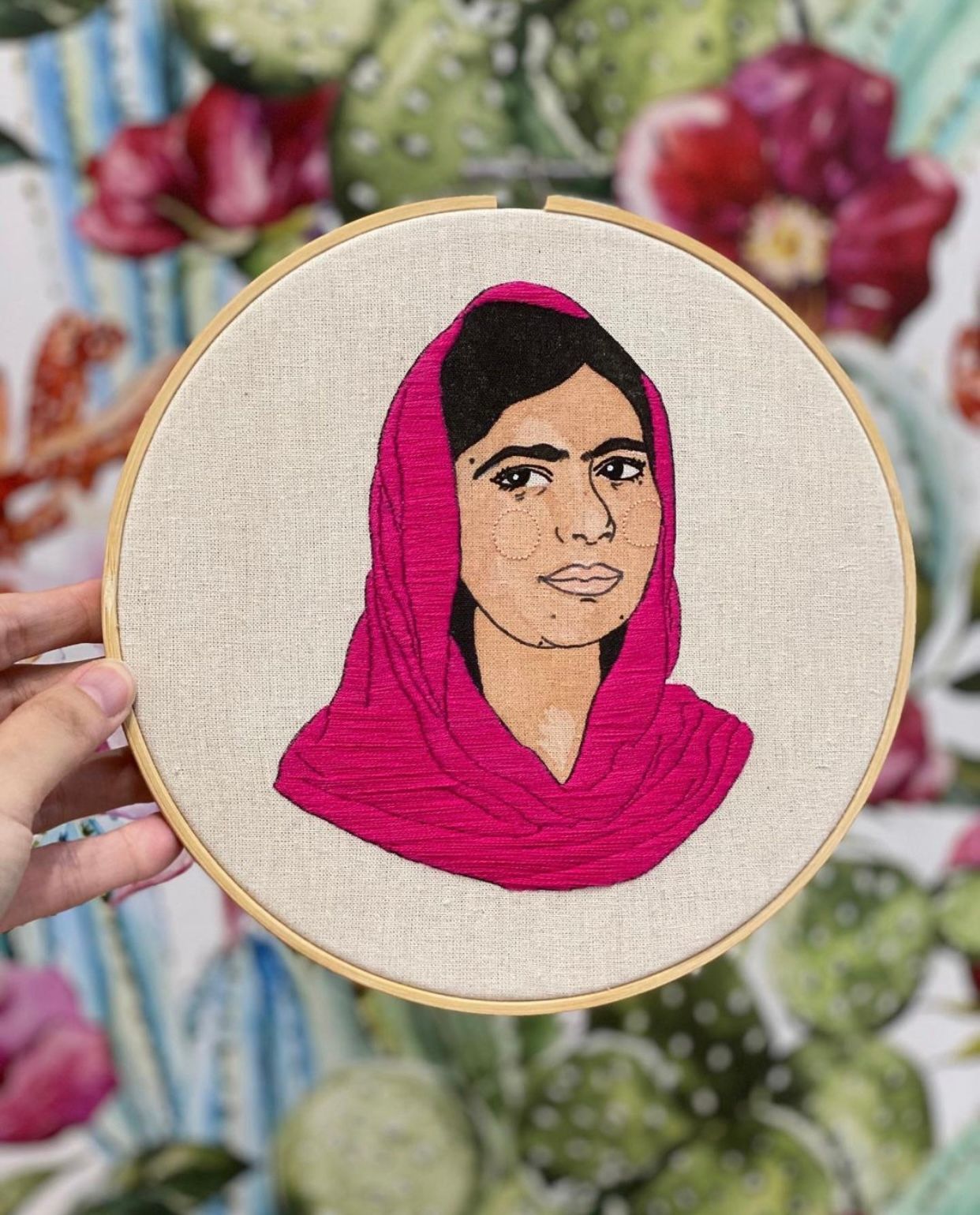 Bordado com aquarela, gouache acrílico e muitas texturas