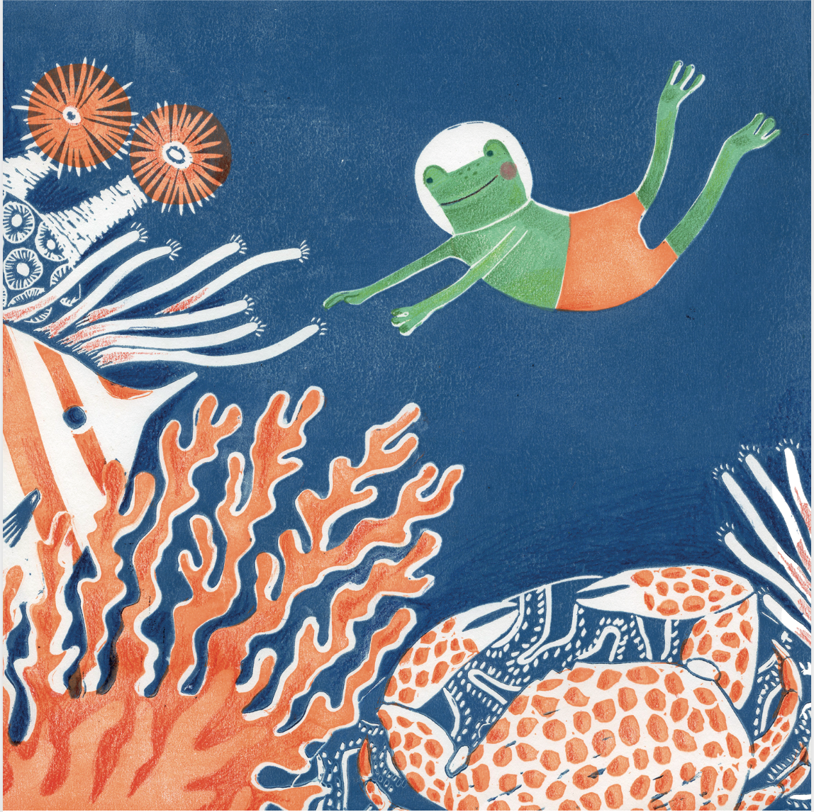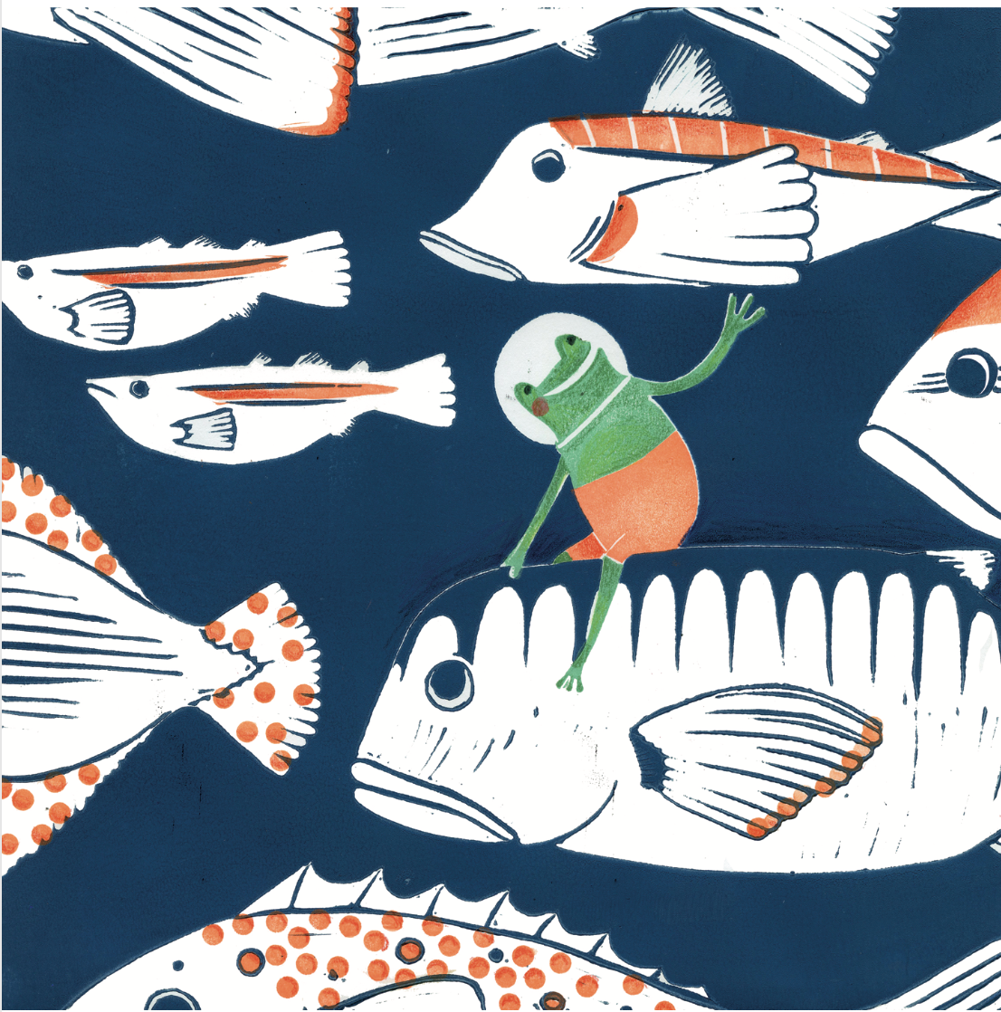 This year I REALLY wanted to finally make a calendar, always when I think of making a calendar, im simply too late...Every time. But this year I thought of it early but had the greatest trouble choosing what would be my theme. I didnt want a 'random' collection of my work. I wanted the calendar to tell a story on its own. And it has become a big project that worked out really well! The story is sort of circular. You can keep 'reading'. The colors go from blue to light blue, to dark blue almost black. This symbolizes the frog getting into deeper water and also coincides with the seasons and it getting darker. It was a real puzzle, but one that worked well in the end and Im very pleased with.