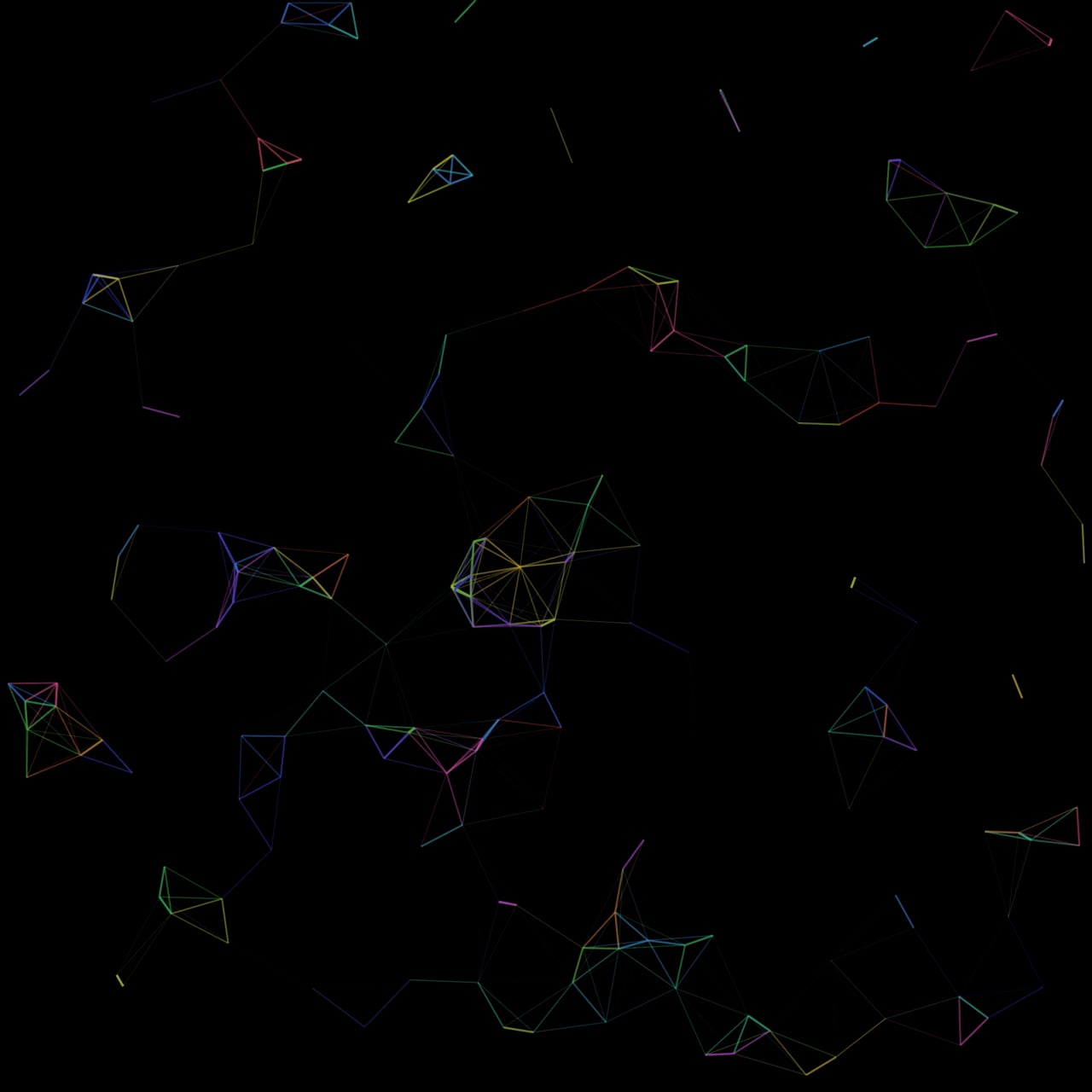 The classic particles-and-lines animation, with a bit of refinement using opacity fades and nice colors. I'm glad to learn how this is done; and there much more to explore here.