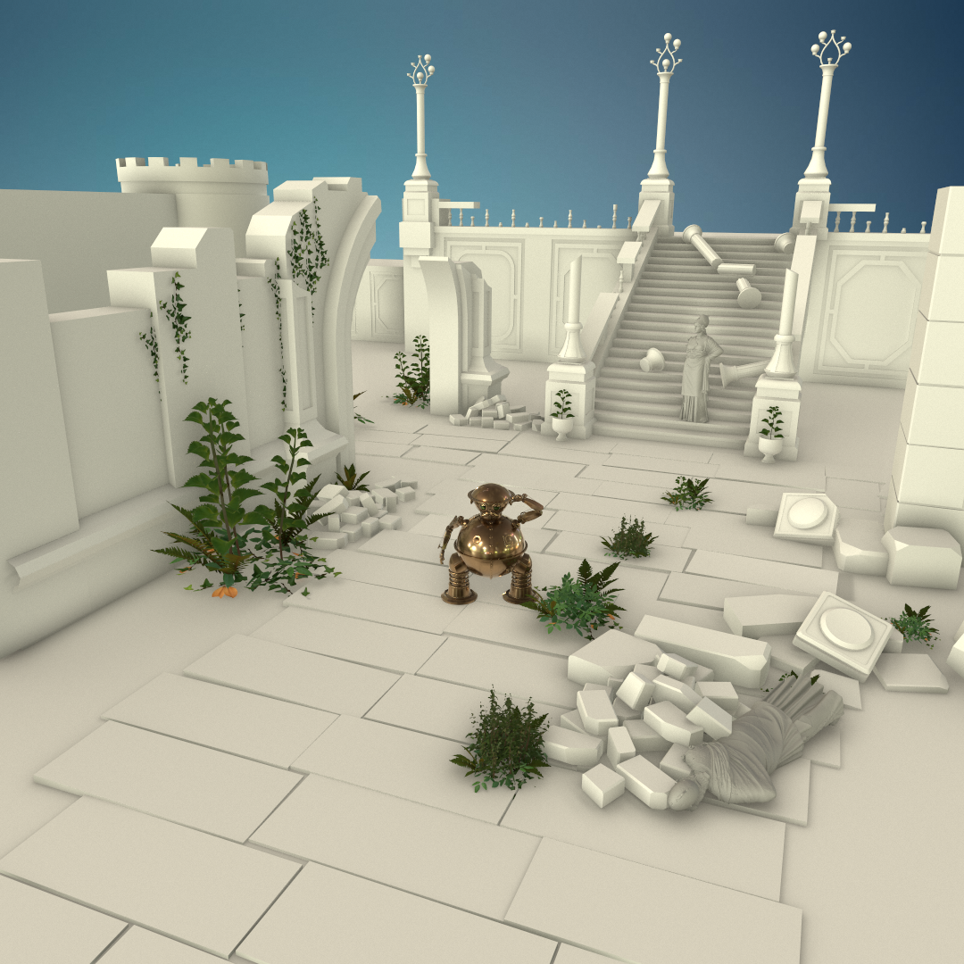 Modelado en Zbrush, retopología, rigg y animación en Maya, mapeo uv con UV Layout, texturizado en Substance Painter, retoque de texturas con Photoshop y renderizado con la Marmoset Toolbag.