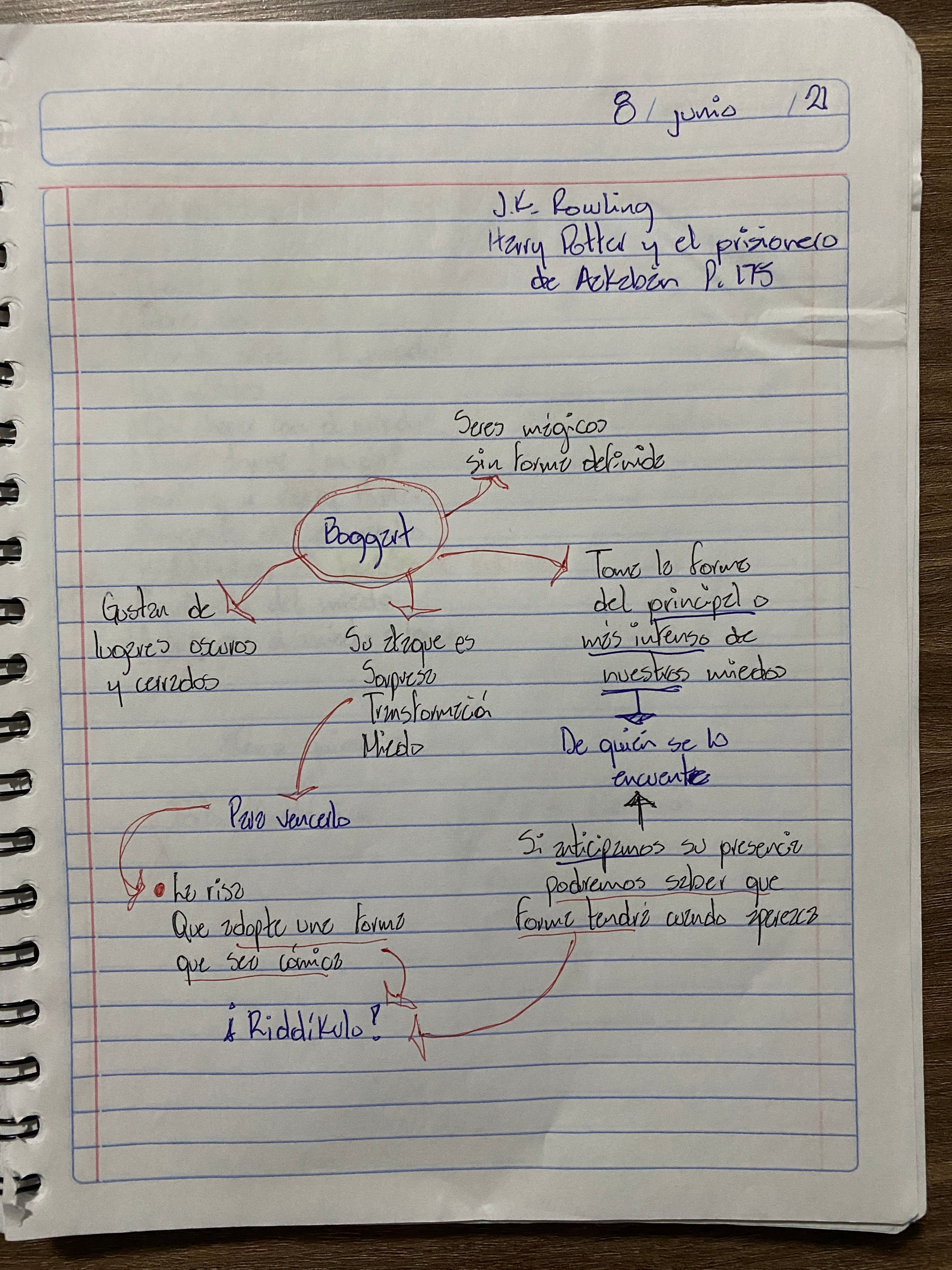 De la lectura, llamo su atención unos seres fantásticos, llamados Bogarts. Estos, tenían como característica tomar la forma del mayor miedo de la persona que los descubriera. Menudo problema. Todo mundo se podría dar cuenta de los miedos, de algo tan íntimo, asunto central en este momento de la novela, y tan seguido, en la vida real. Descubrió que mientras se lavaba los dientes, en esos ojos extraños a través del espejo, había una persona que ocultaba sus miedos.