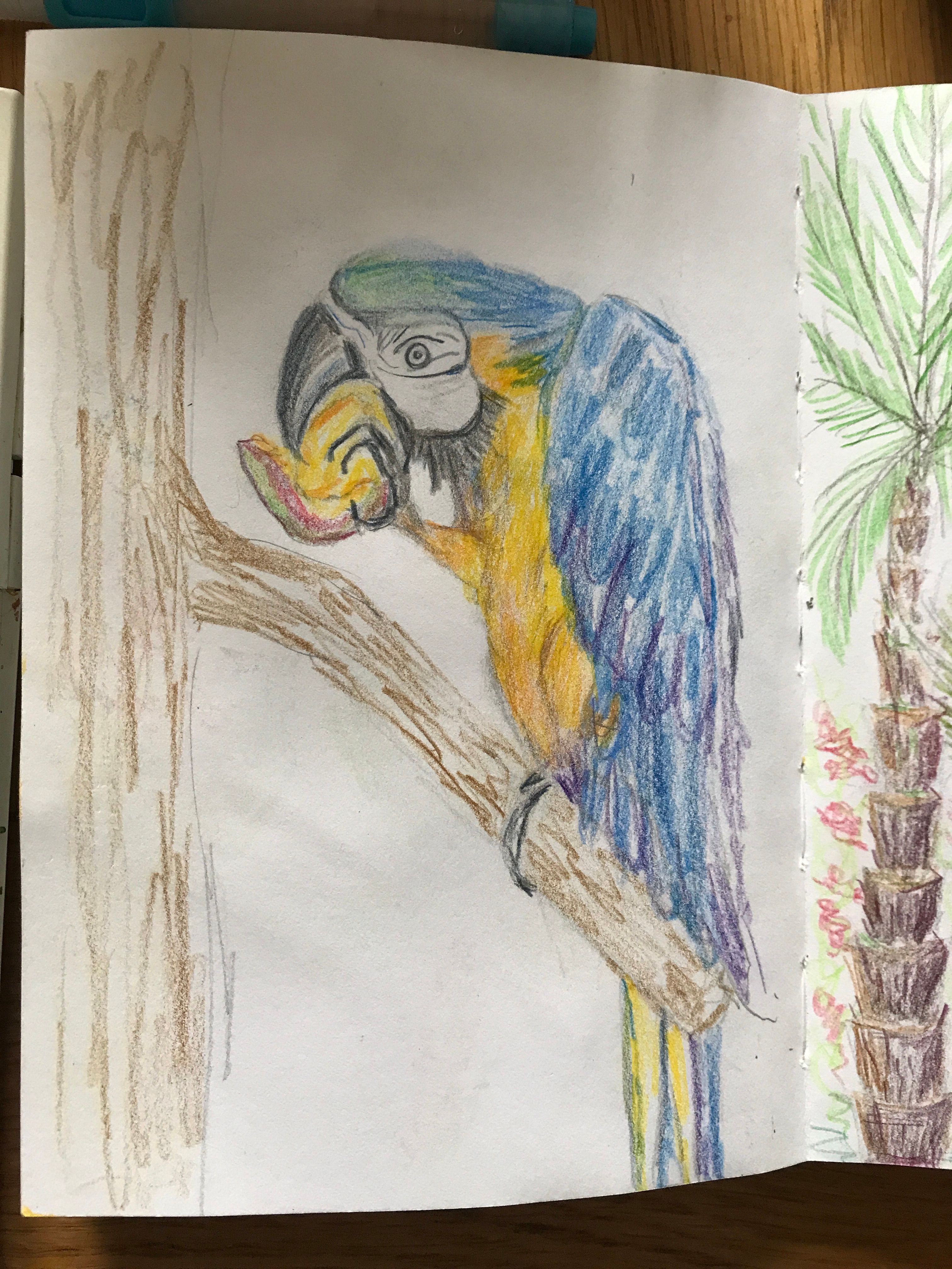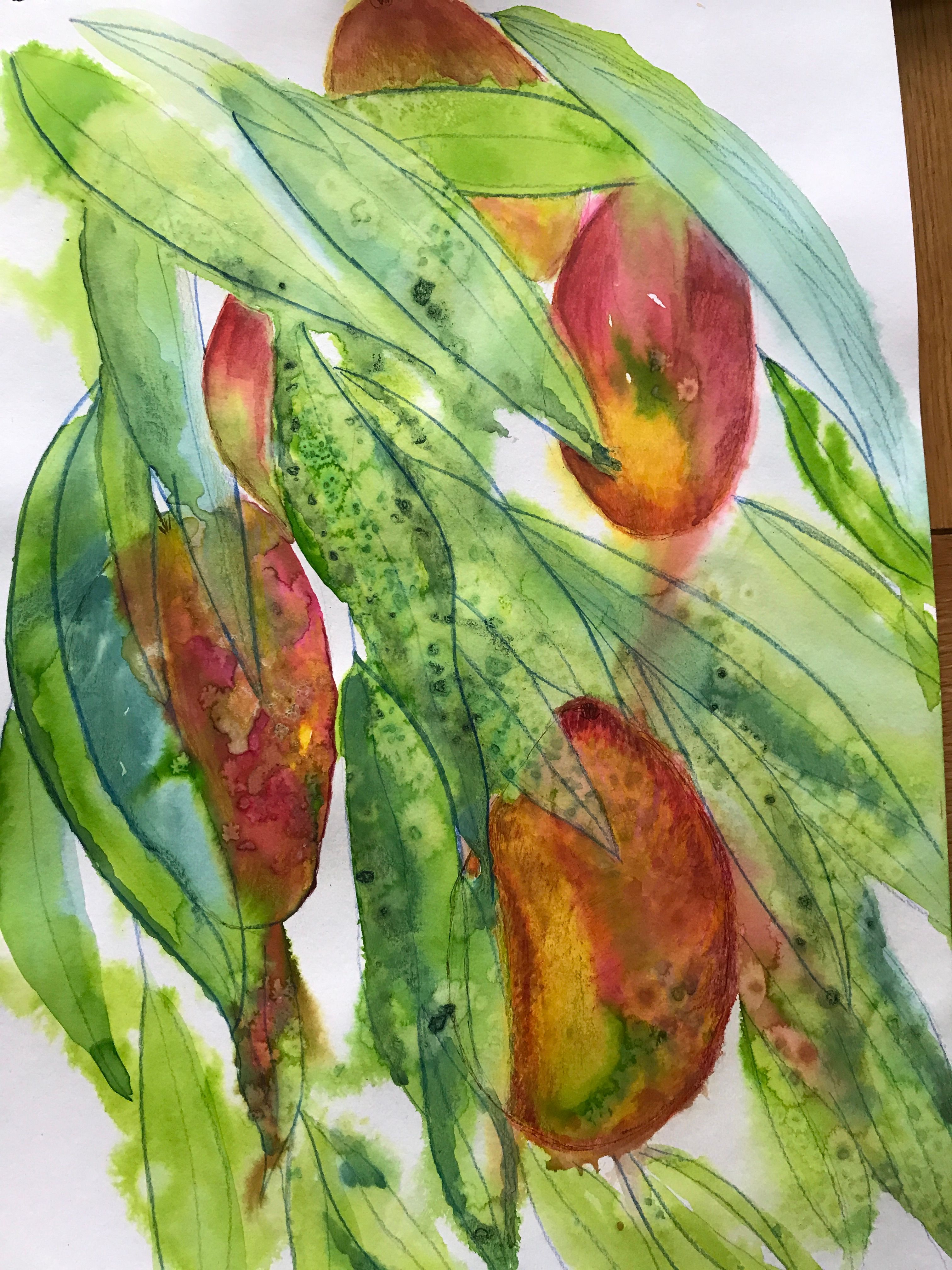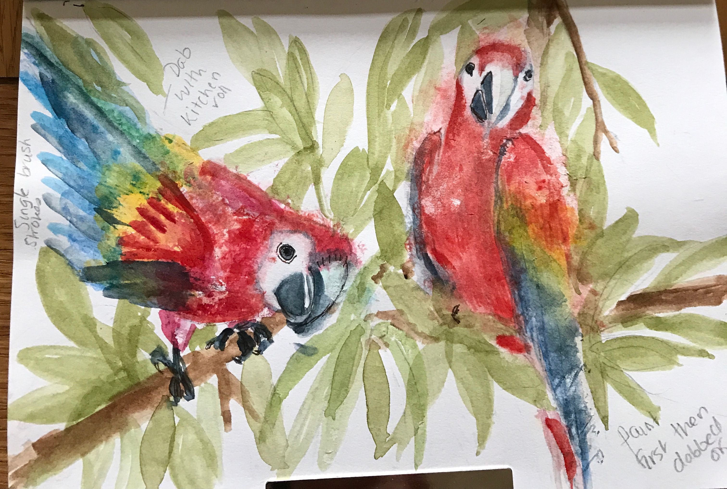 Szczególnie podobał mi się drugi obraz. Nie byłem pewien, czy zamierzałeś, ale jakoś papuga / ara wyglądała trochę bezczelnie. a potem mango z akwarelą i solą. było w tym coś wyjątkowego, nie wiem konkretnie, co o tym powiedzieć.