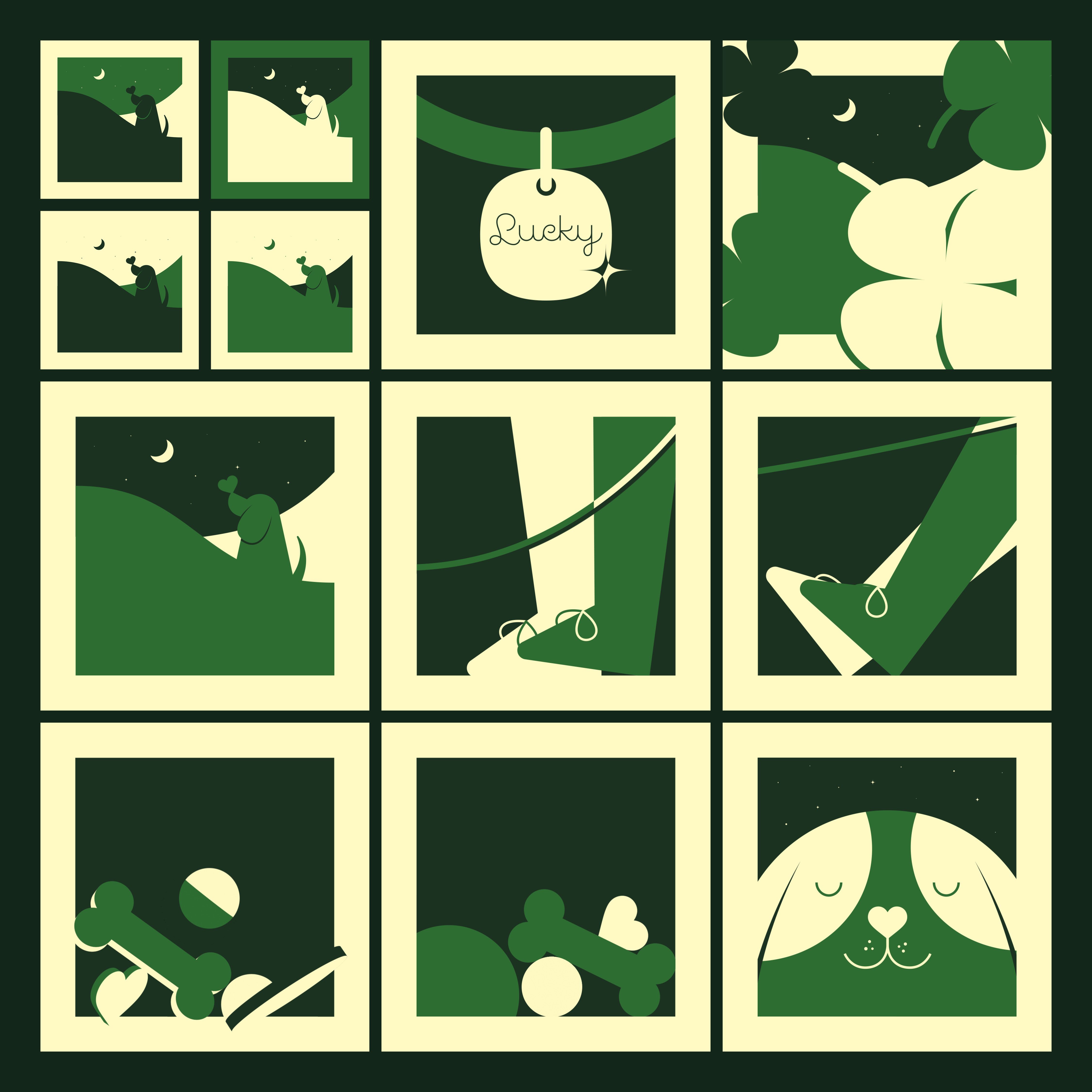 Idąc za Twoją radą, stworzyłem GIF trwający około 15 sekund, zawierający dość krótkie, następujące po sobie sceny, przedstawiające Lucky'ego i kilka chwil z jego życia. Pomiędzy spokojem kilku wieczorów spędzonych na wpatrywaniu się w gwiazdy, a szaleństwem i chaosem piętrzących się zabawek.