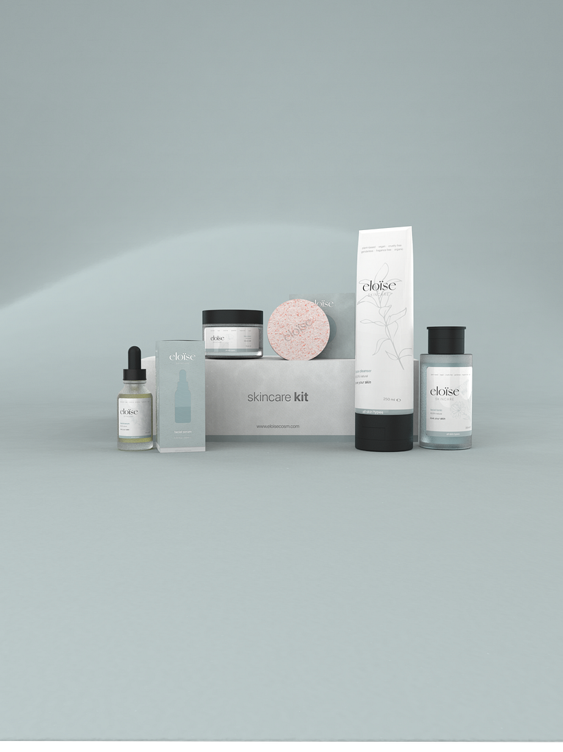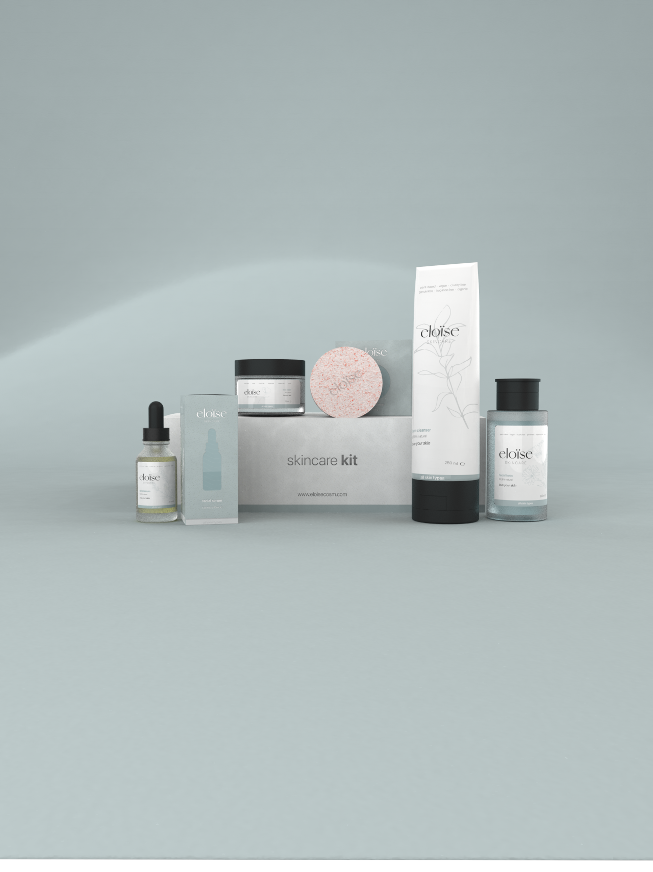 Consta de 5 productos: un sérum facial, una crema hidratante, un jabón facial, un jabón sólido y un tónico.