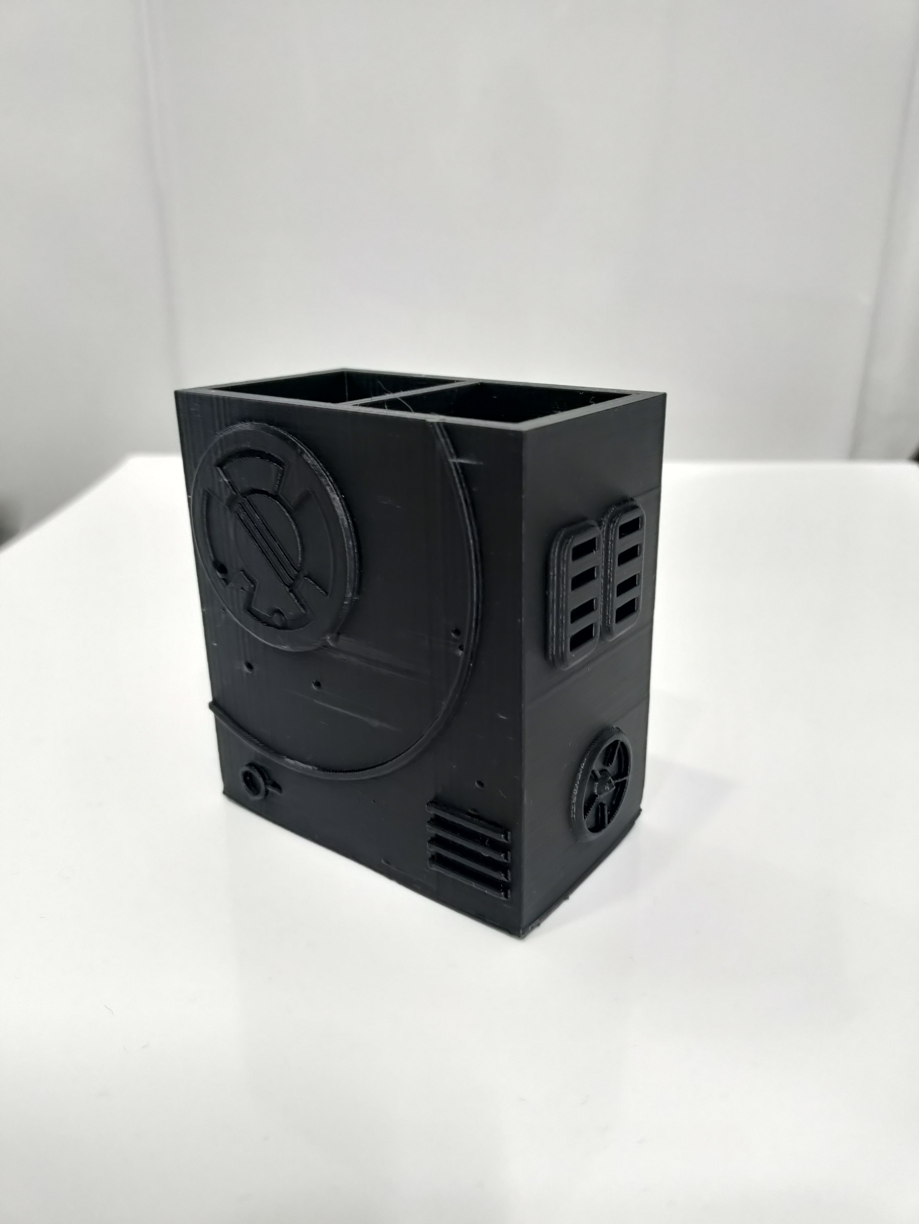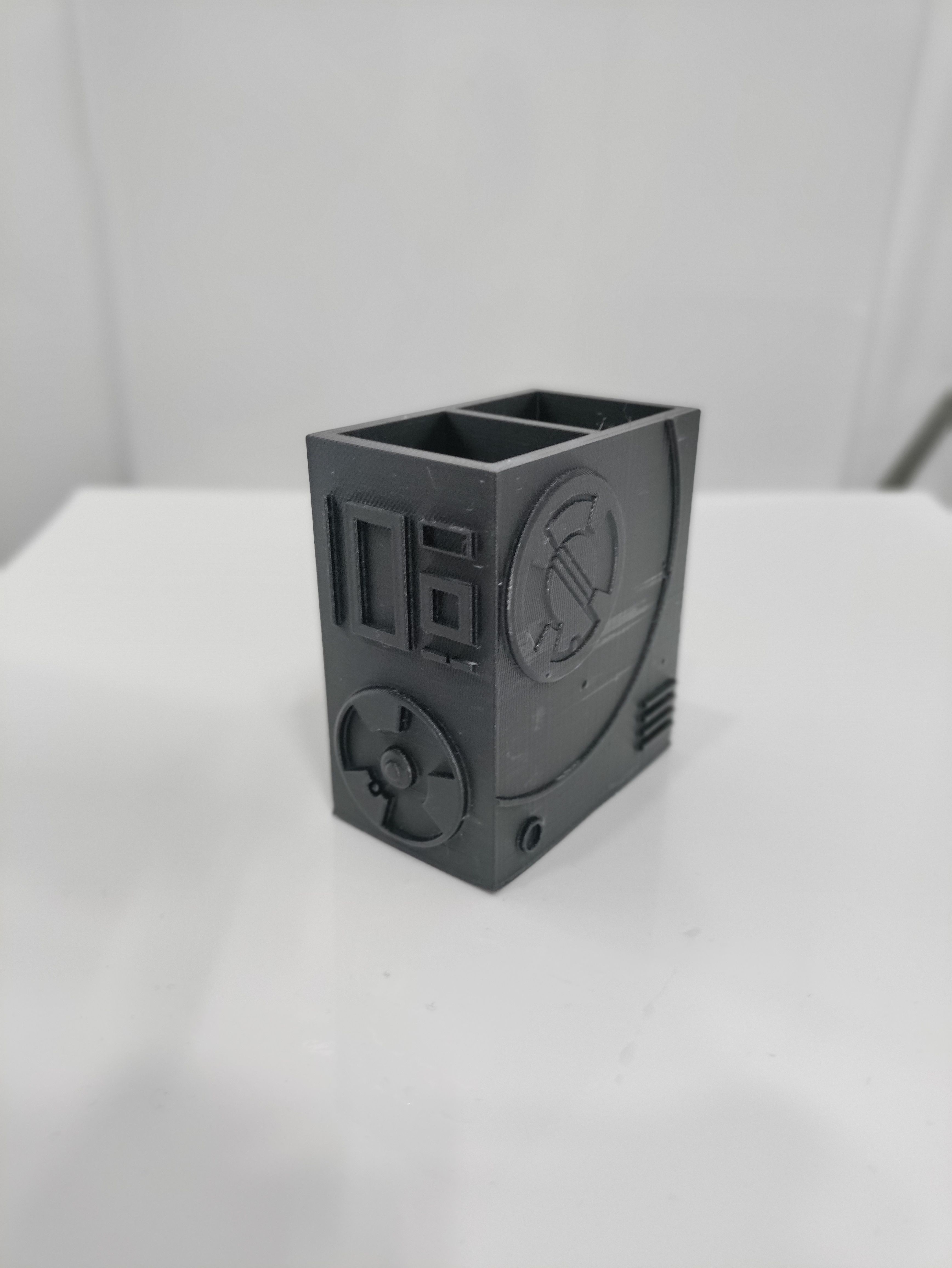 Lo imprimí en PL, y probablemente se desintegre con el uso (porque no es resistente al agua) pero como tenía muchas ganas de probar los dibujos (relieves) en la pieza, era importante hacer el proyecto en el único material que tenía en casa. También noté que debido a que los pinceles son altos, la estabilidad de la pieza (porque es liviana y tiene una base estrecha) tampoco es la mejor. Pero al menos los pinceles ya no se caen :)