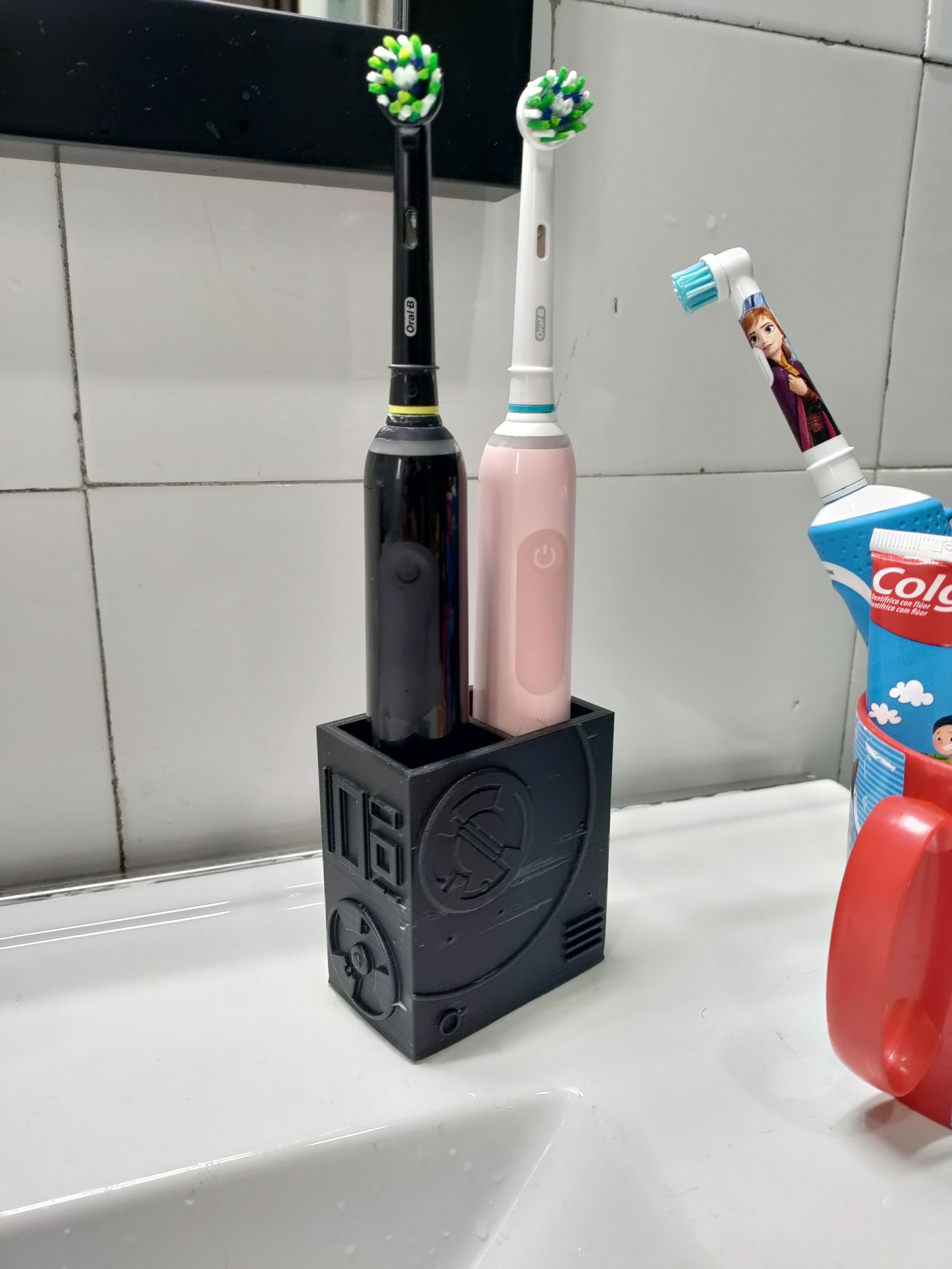 Imprimi em PL, e provavelmente com o uso vai desagregar-se (por não ser resistente à água) mas como queria muito testar os desenhos (relevos) na peça, foi importante fazer o projecto no único material que tinha em casa. Percebi também que por as escovas serem altas, a estabilidade da peça (por ser leve e ter uma base estreita) também não é a melhor, mas pelo menos, as escovas, deixaram de estar sempre cair :)