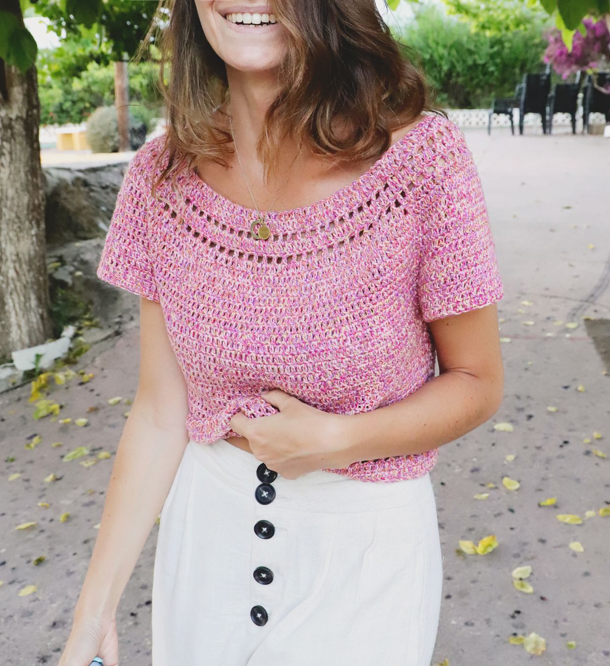 Puedes encontrar el patrón del top Amelia totalmente gratuito, en mi Blog: