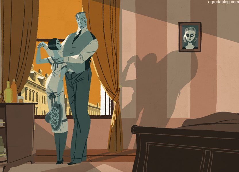 En este proyecto de la editorial sevillana Metropolisiana (especializada en cuidadas ediciones ilustradas de clásicos) tuve total libertad para elegir el texto sobre el que iba a trabajar. Después de leer muchísimos relatos de distintas épocas y autores, di con un par de cuentos de Fitzgerald que me resultaban complementarios y que además me ofrecían la oportunidad de plasmar algunas metáforas visuales a lo largo de todo el libro.