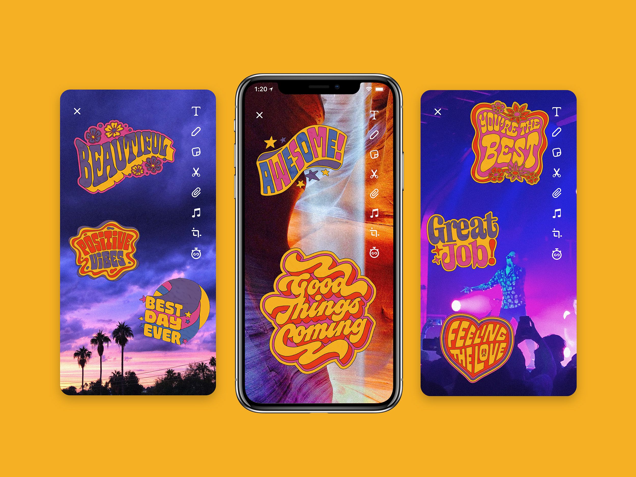 I had the pleasure of illustrating a collection of ”unlockable” custom stickers for users to decorate their snaps. It felt fitting to explore ideas of positivity (as well as tasty treats) to lift the spirits during the wild pandemic of a year. A total of 32 custom stickers were drawn between both sets.