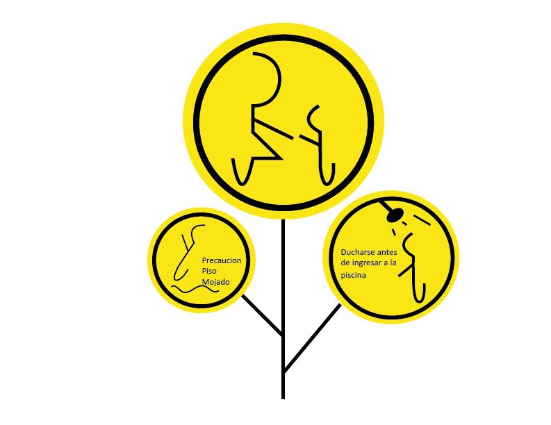 Esta pieza fue creada para señalizar un conjunto residencial localizado en el barrio el poblado, la pieza esta compuesta por una señal restrictiva, esta informa los cuidados que deben tener los padres de familia con sus hijos, al momento de entrar a la piscina y tener precaución con el piso mojado.
