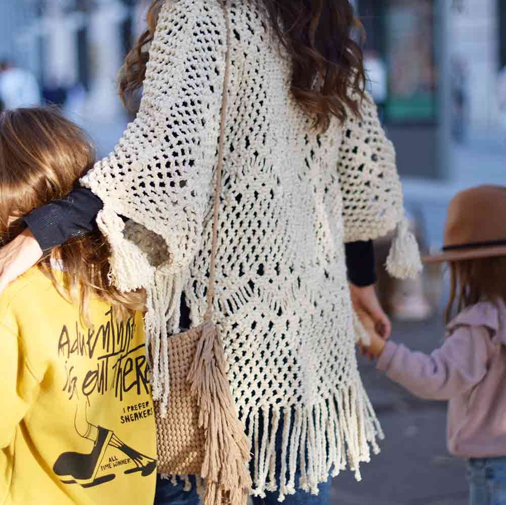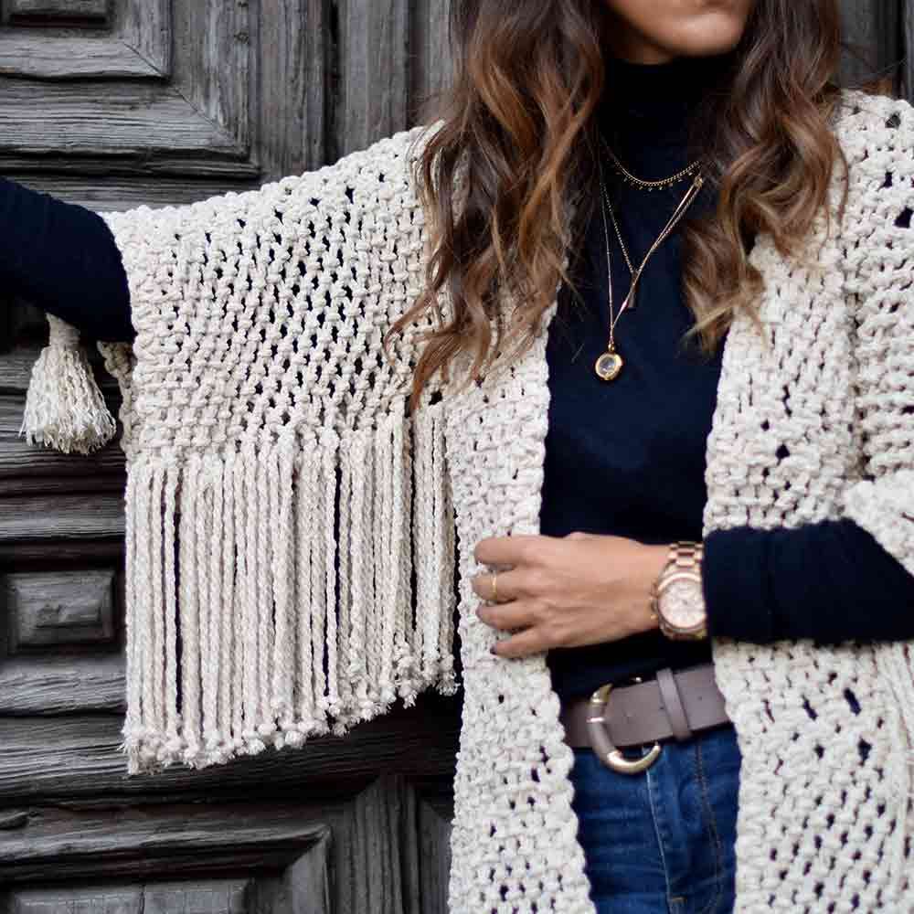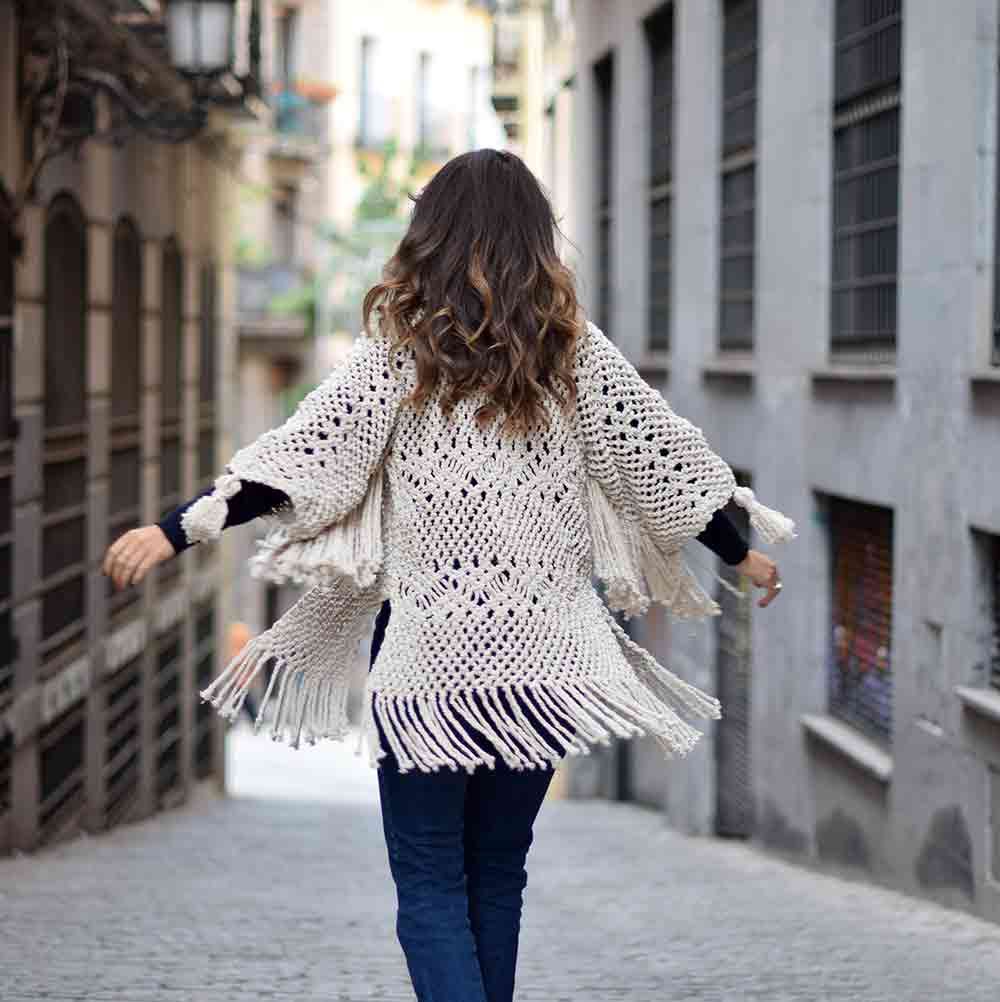 Con el cordón de macramé velvet, conseguimos esa caída y calidez necesaria para una prenda otoñal.