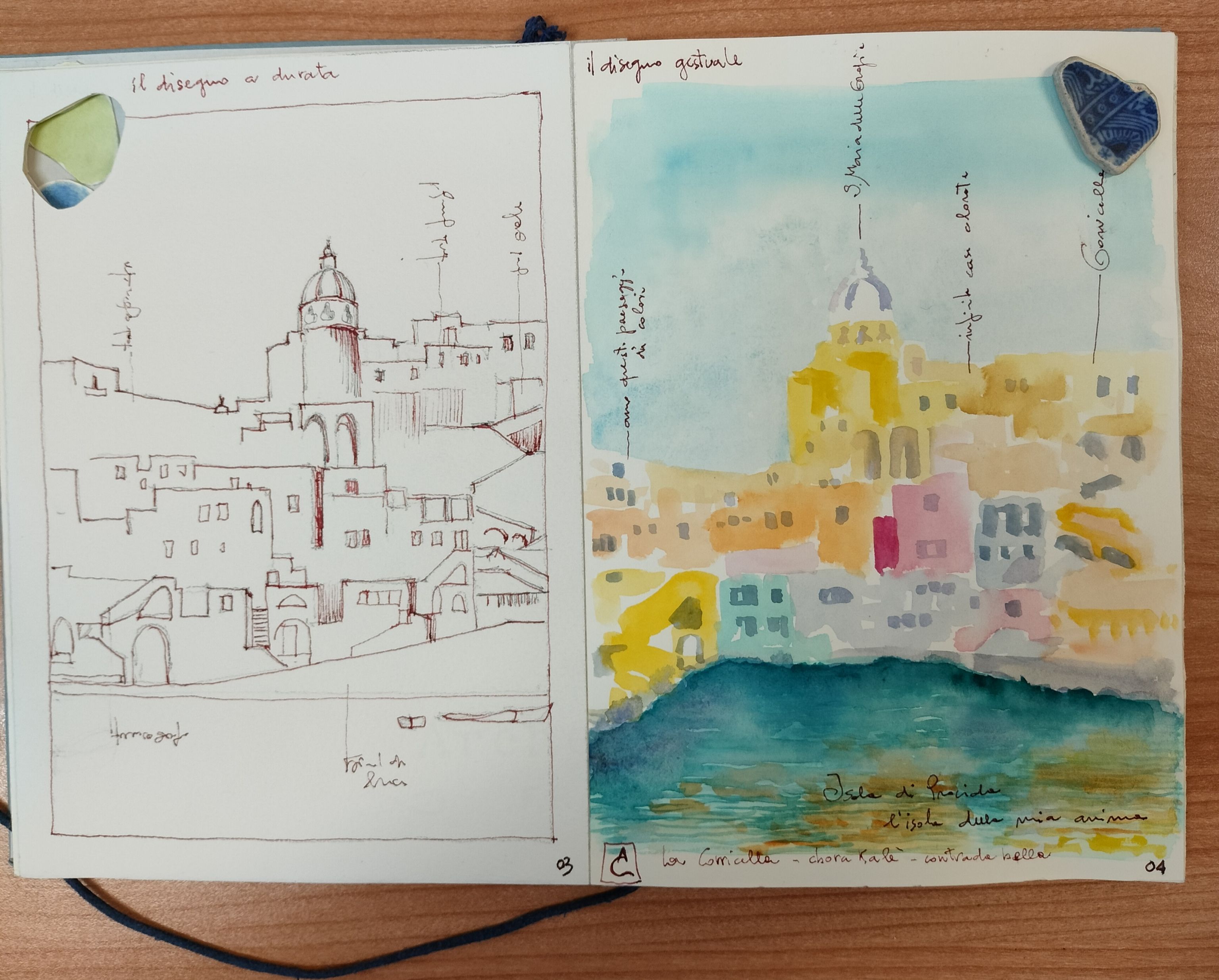 ll mio progetto del corso: Travel sketchbook con tecniche miste. Un progetto di Antonella Calligaris: Procida - l'isola della mia anima.