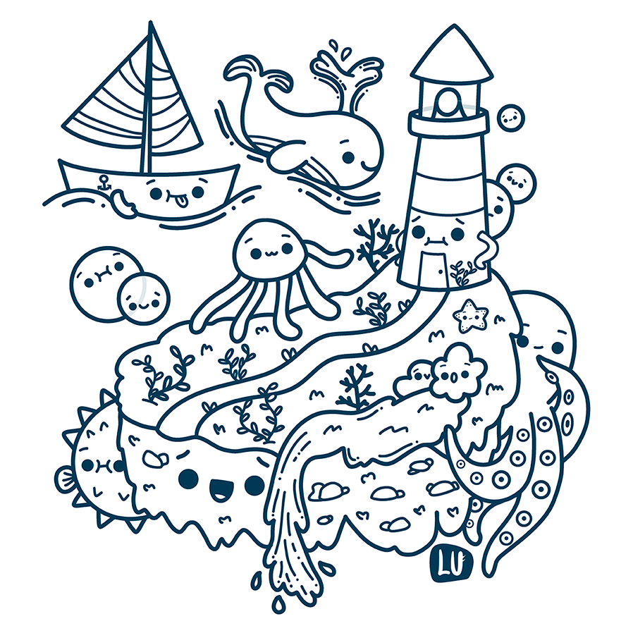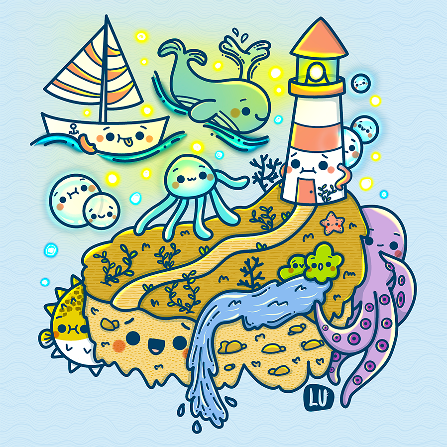 Hola! Mi nombre es Lu, soy de Málaga, España. Y como me mudé a Salamanca lejos del mar decidí hacer un mundo mágico kawaii relacionado con el mar.