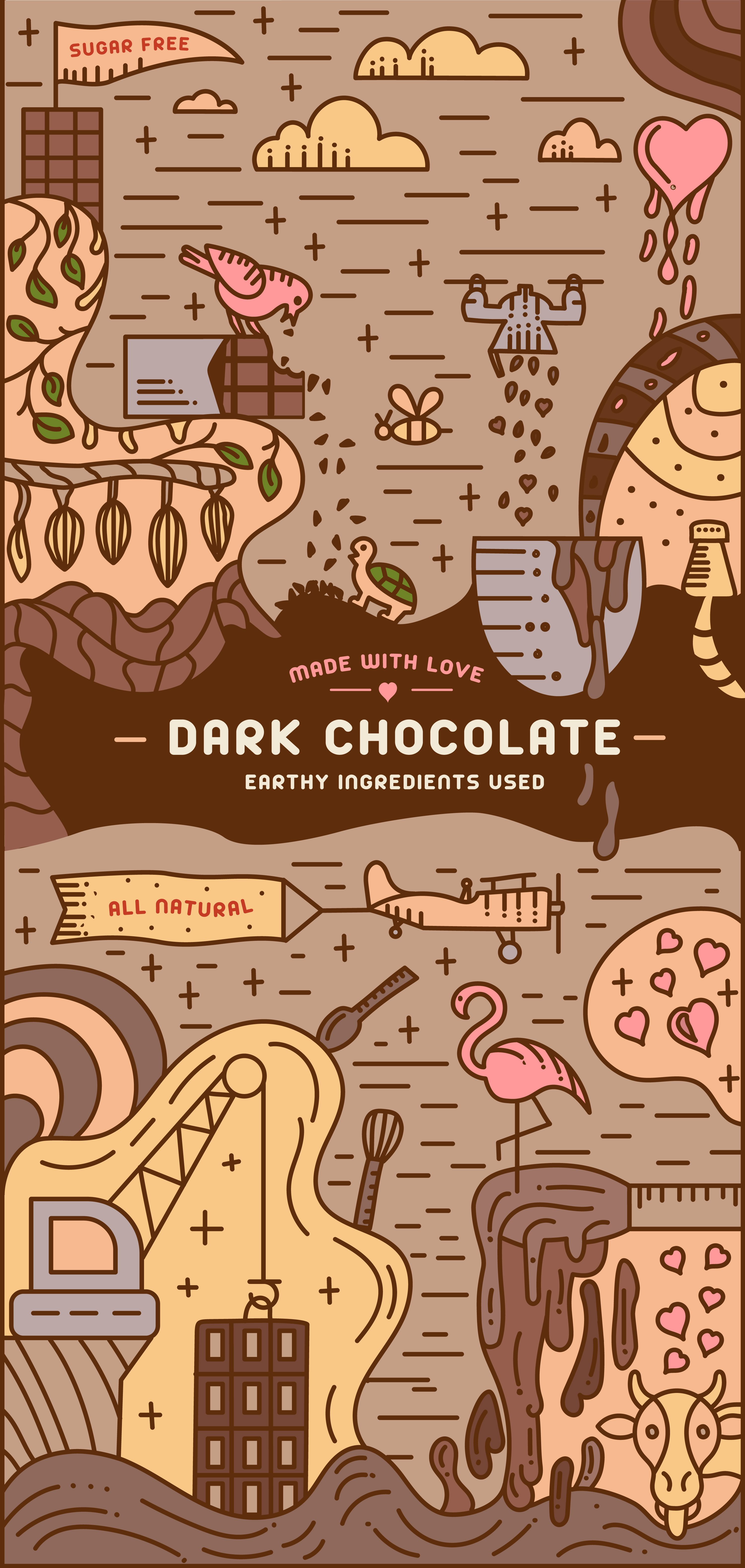 Made a doodle style work in small spaces- candy bar wrapper. Feedback on the illustrations/composition would be great? Does this feel like dark chocolate with a story? Thanks.