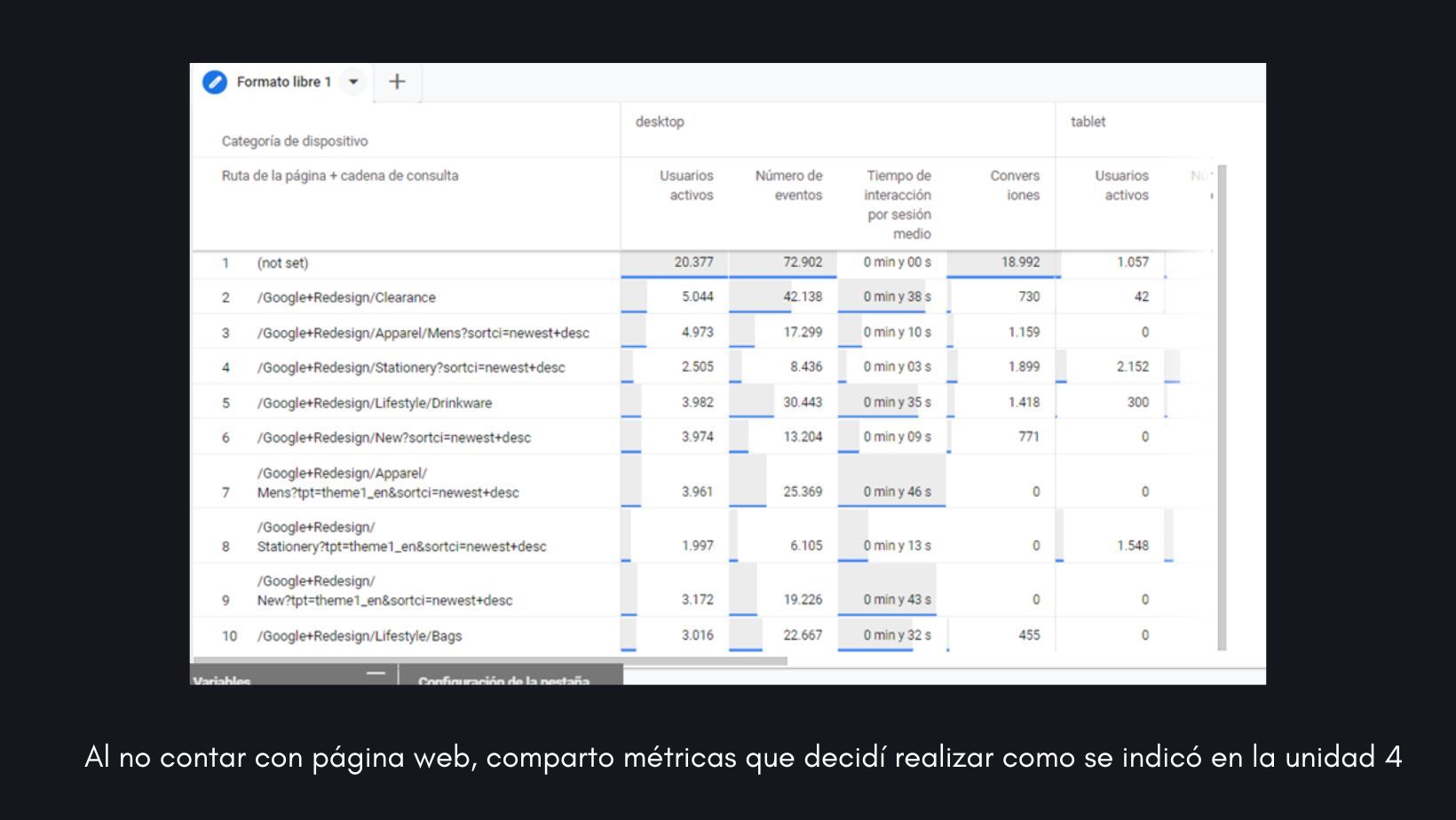 Mi proyecto del curso: Google Analytics: introducción al análisis de datos digitales