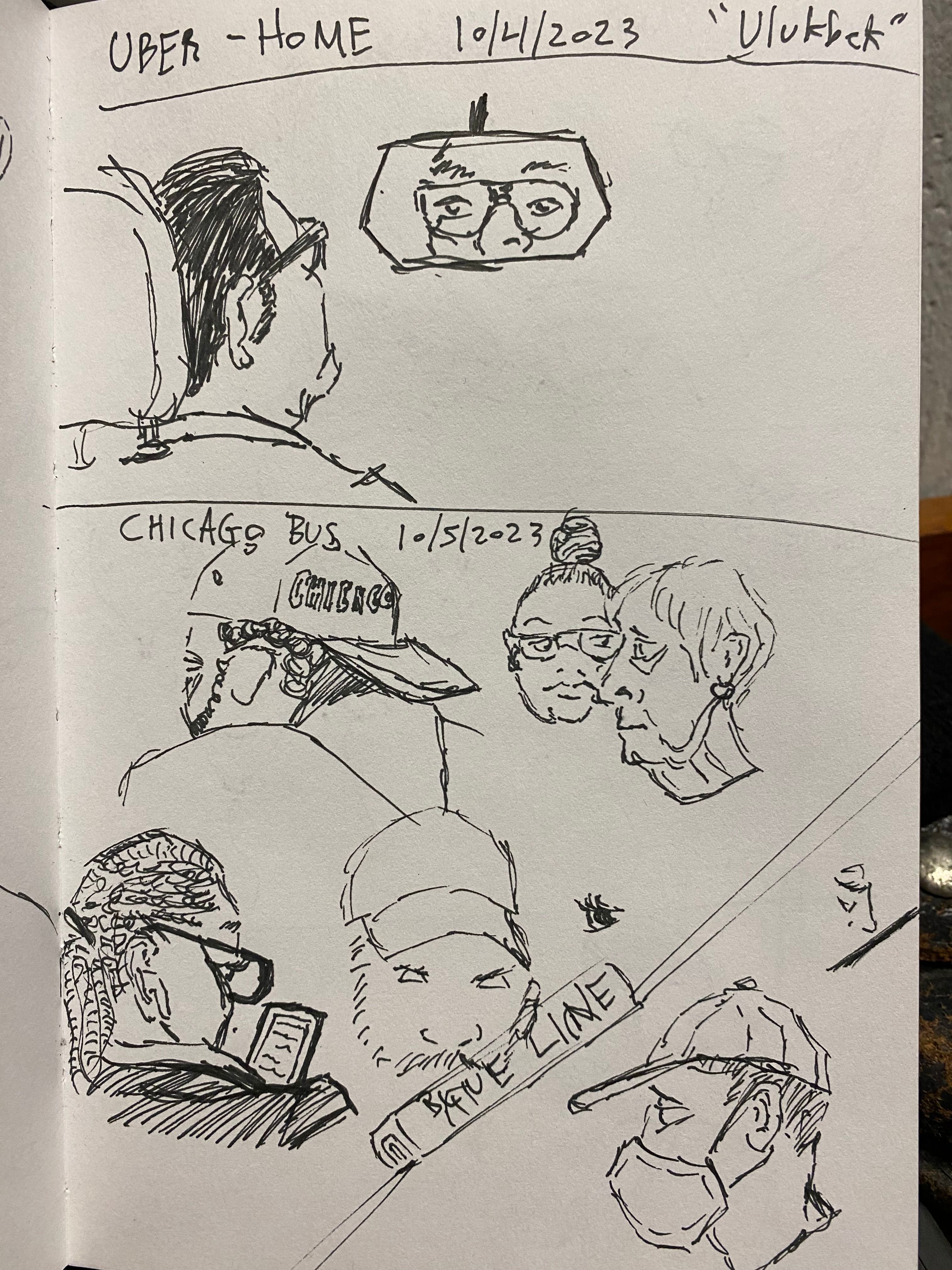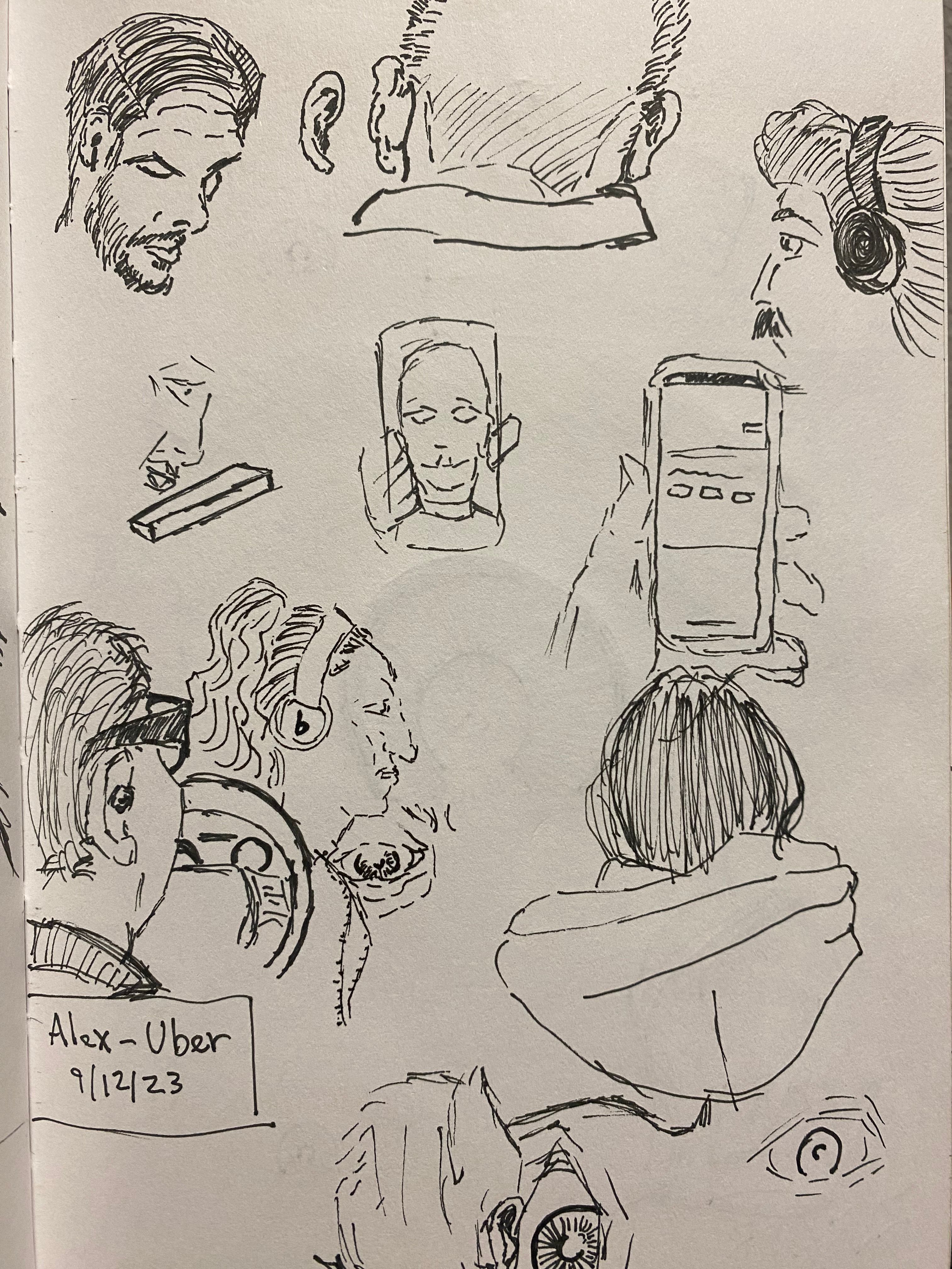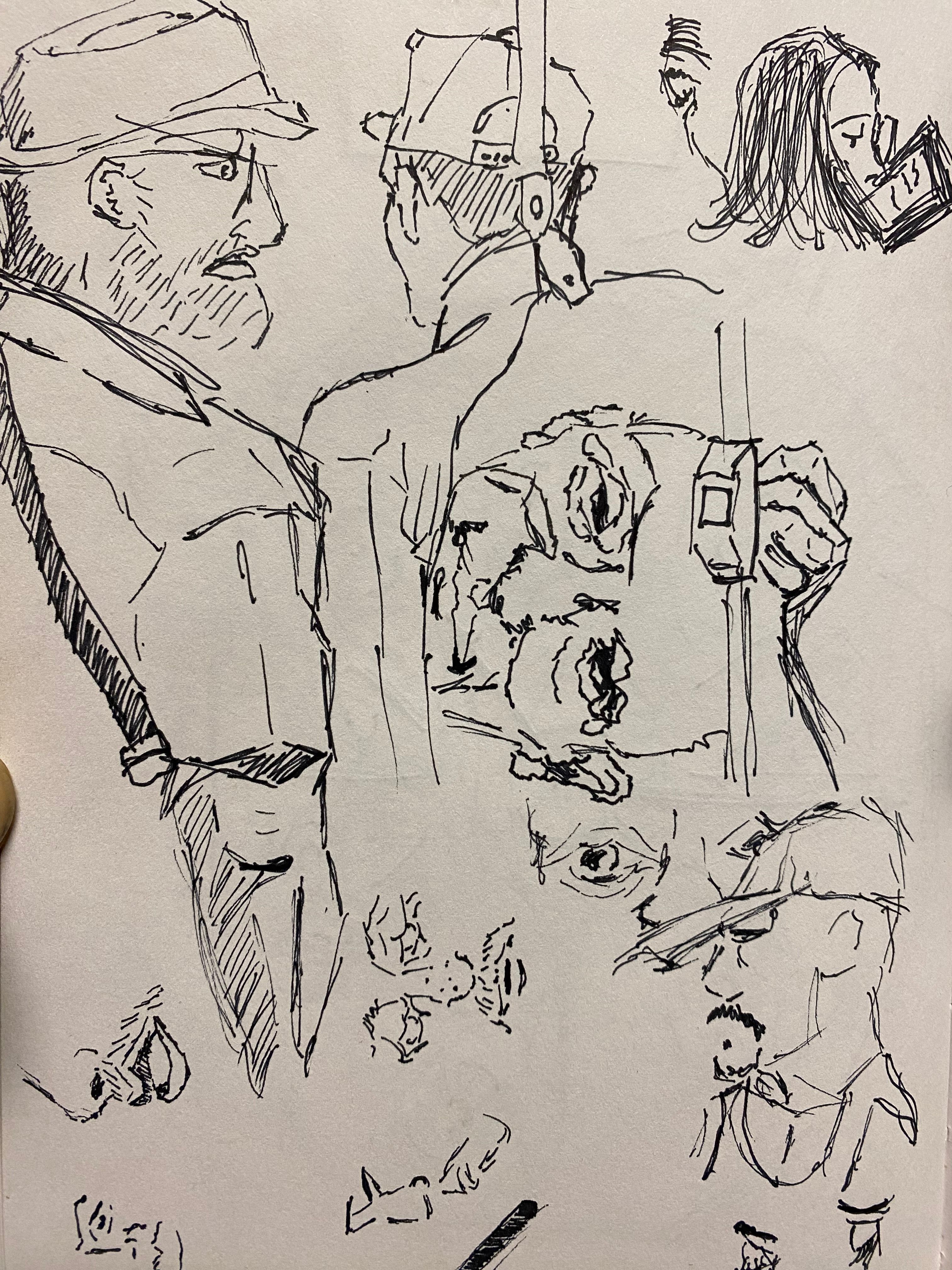 I enjoy sketching people on my commutes, whether it be on the train, bus or in an Uber. I'd like to make a book of these sketches someday, but for now this is just a peek into my sketchbook.