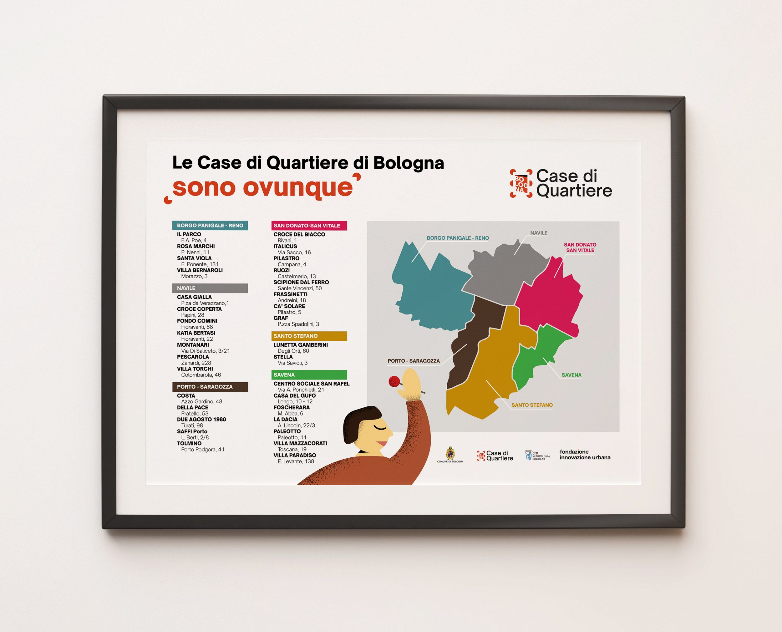 In this rebranding proposal, it stems, as a first step, from an in-depth study of the values and goals outlined in the Bologna District Houses Presentation Brief. From here I understand the importance of human values and its connections, of what is really important around us: each value takes shape in a different way in each of us, making our nature exalted and cultivating the desire to pass it on to others. I wanted to emphasize all these concepts in a simple but impactful graphic element that can remain in the memory of those who frequent the environments : the shape.