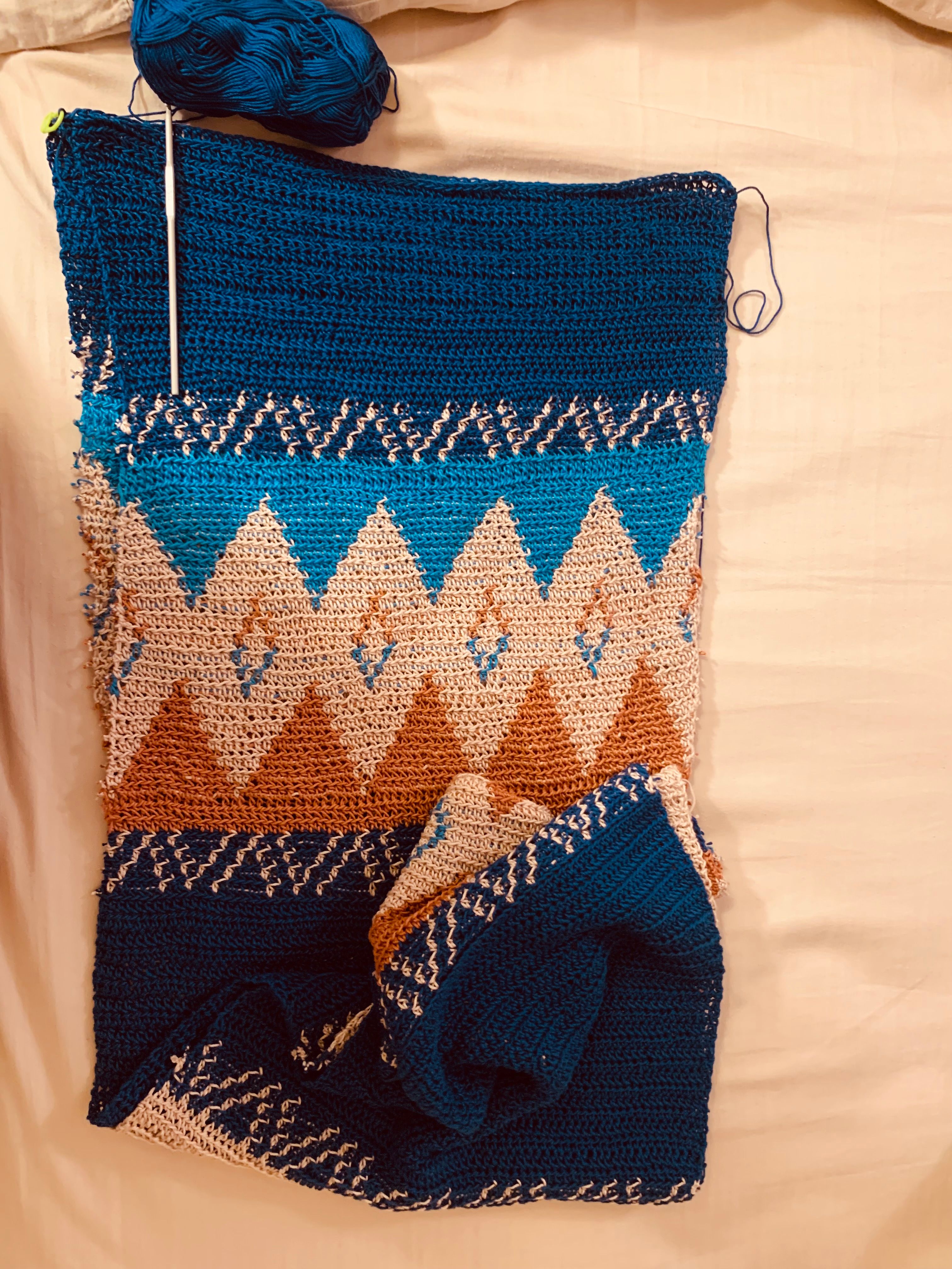 Kupiłam kurs jakiś czas temu i jestem zafascynowana Angelą. Ćwiczyłem gobelin przy różnych projektach, oto kilka przykładów. Tylko pod imieniem Sofia ćwiczyłam model nieskończoności w projektach, które robiłam w 2022 r., ale nadal ćwiczyłam, obecnie robię szalik z różnymi wzorami nieskończoności i będę nadal robić więcej, ponieważ uwielbiam stosować szydełko do użytecznych i wyjątkowe rzeczy w bardziej współczesny sposób. Dziękuję Angela za Twój sposób nauczania, Twoje ciągłe wsparcie w sieciach i motywację, którą nieustannie nam dajesz ❤️