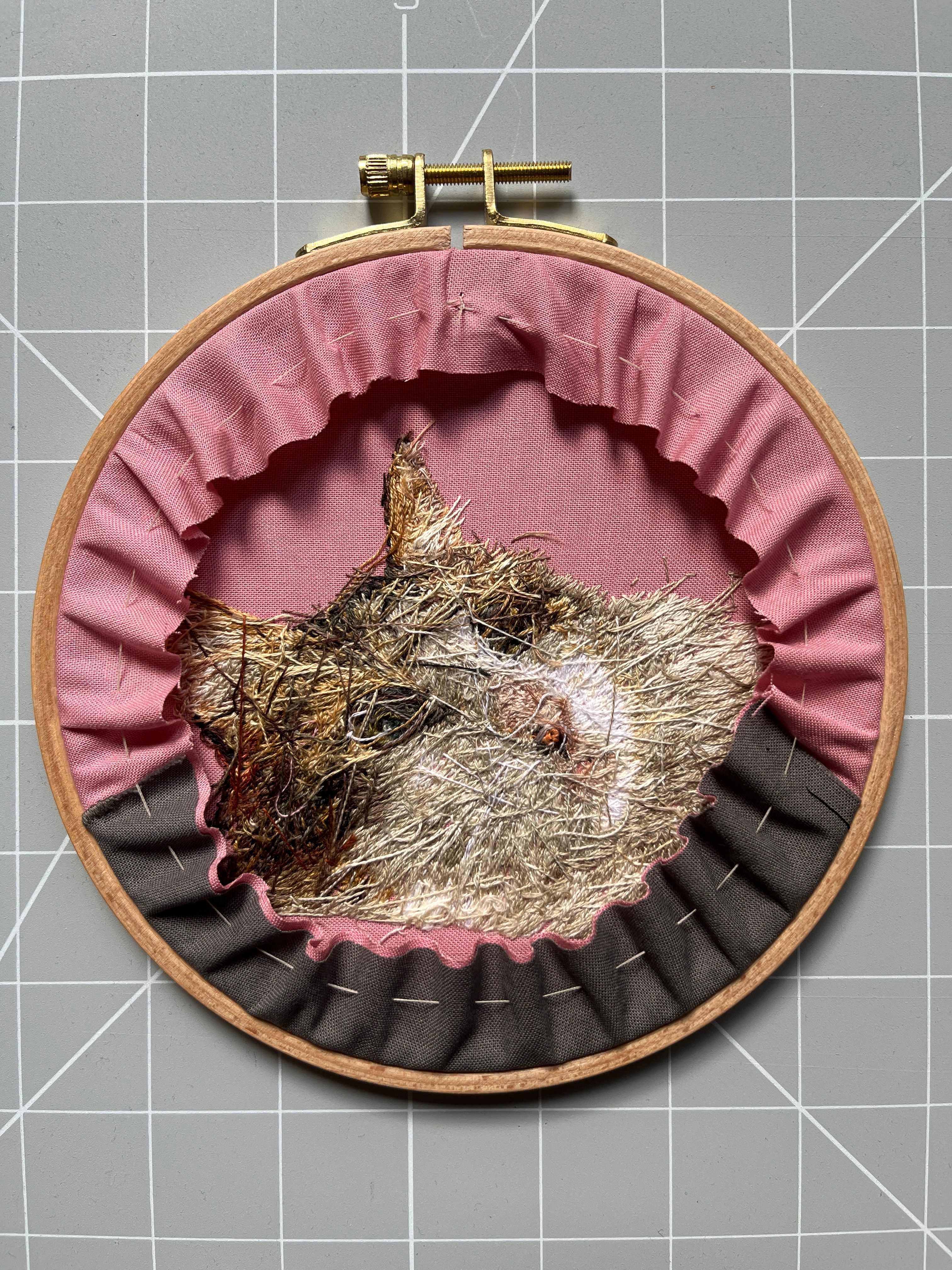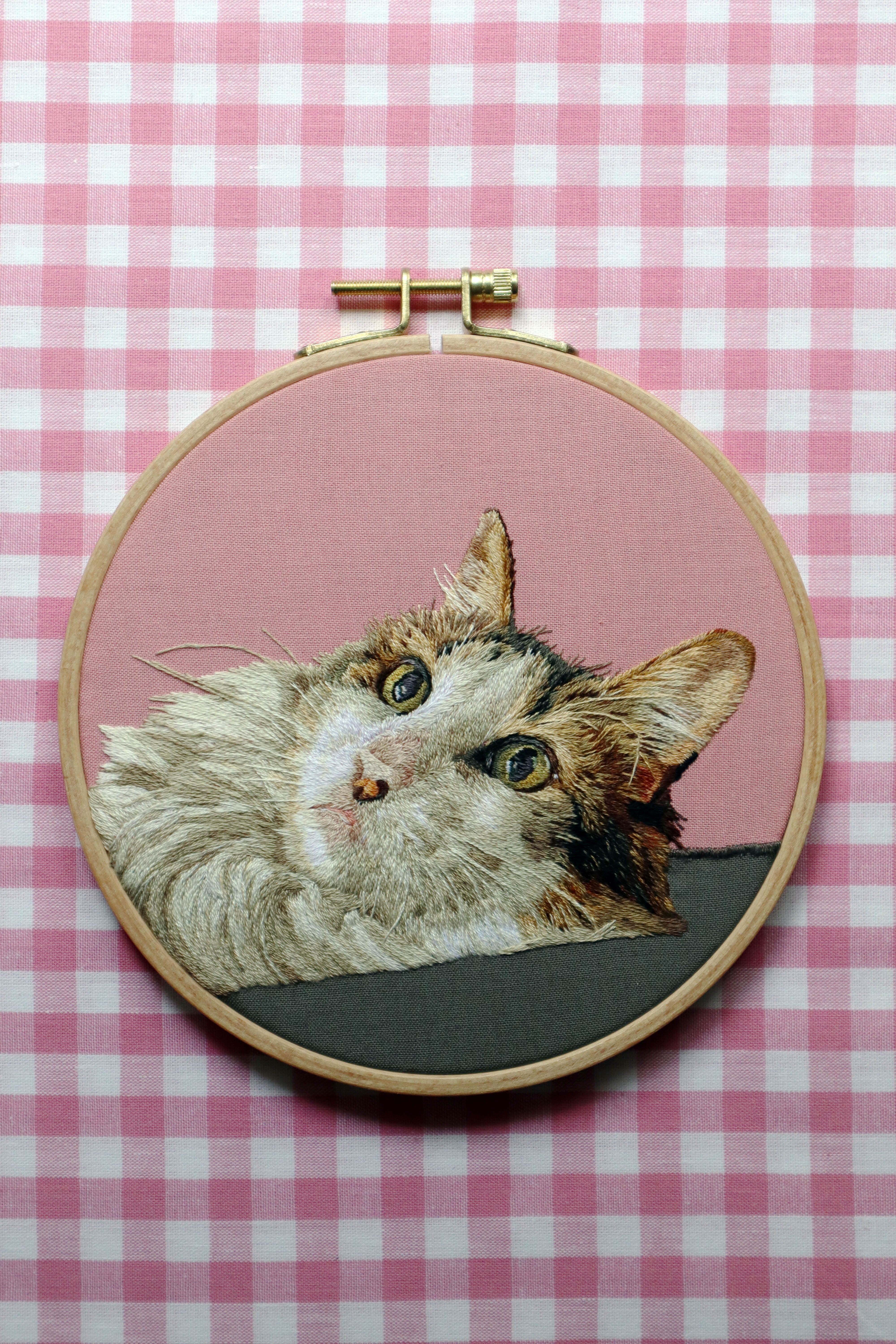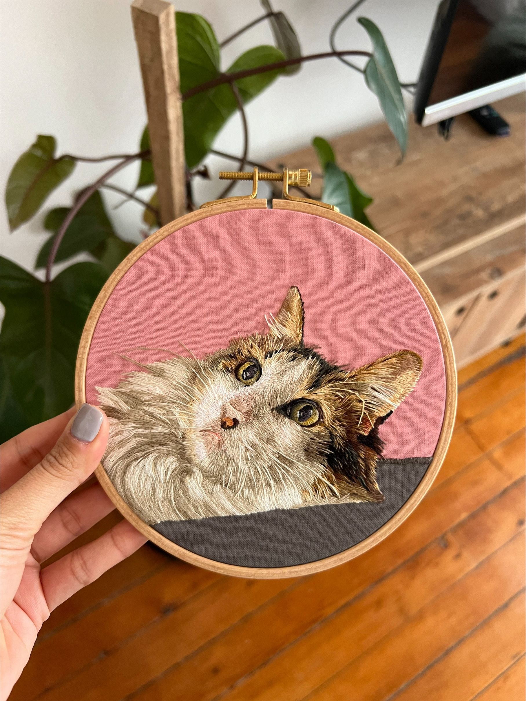 Original pictureWIP of Carlitos portraitBack side of the finished embroidery before covering with fabricFinal resultCarlitos portrait arrived to Argentina!Carlitos smelling his portraitCarlitos with his portrait