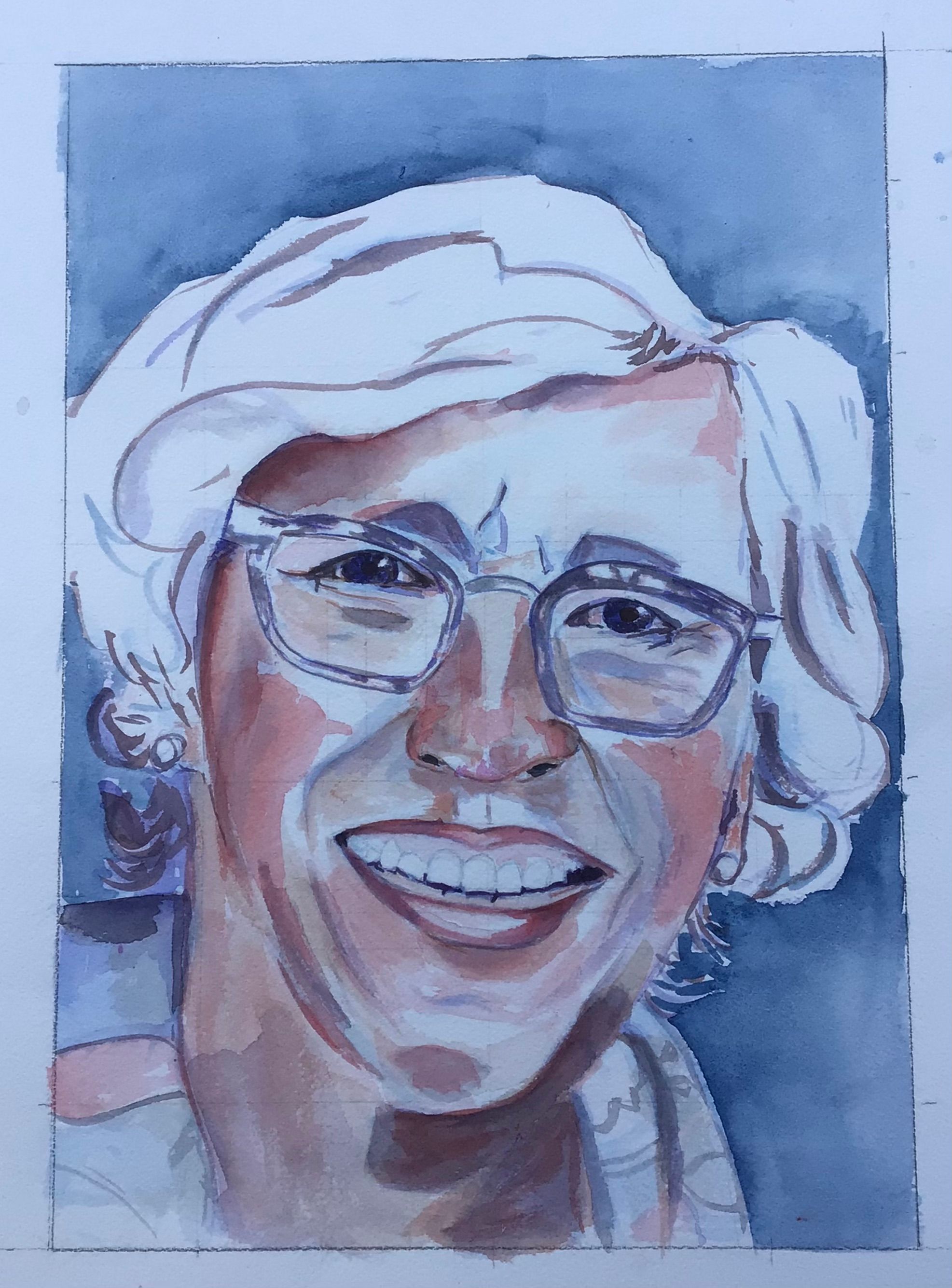 J’ai beaucoup aimé votre façon de superposer les couches d’aquarelles pour peindre un portrait vivant. J’ai encore beaucoup de travail pour équilibrer les couleurs et savoir bien positionner mes traits de pinceau et aussi imaginer que la couche va s’éclaircir, mais je ne désespère pas !