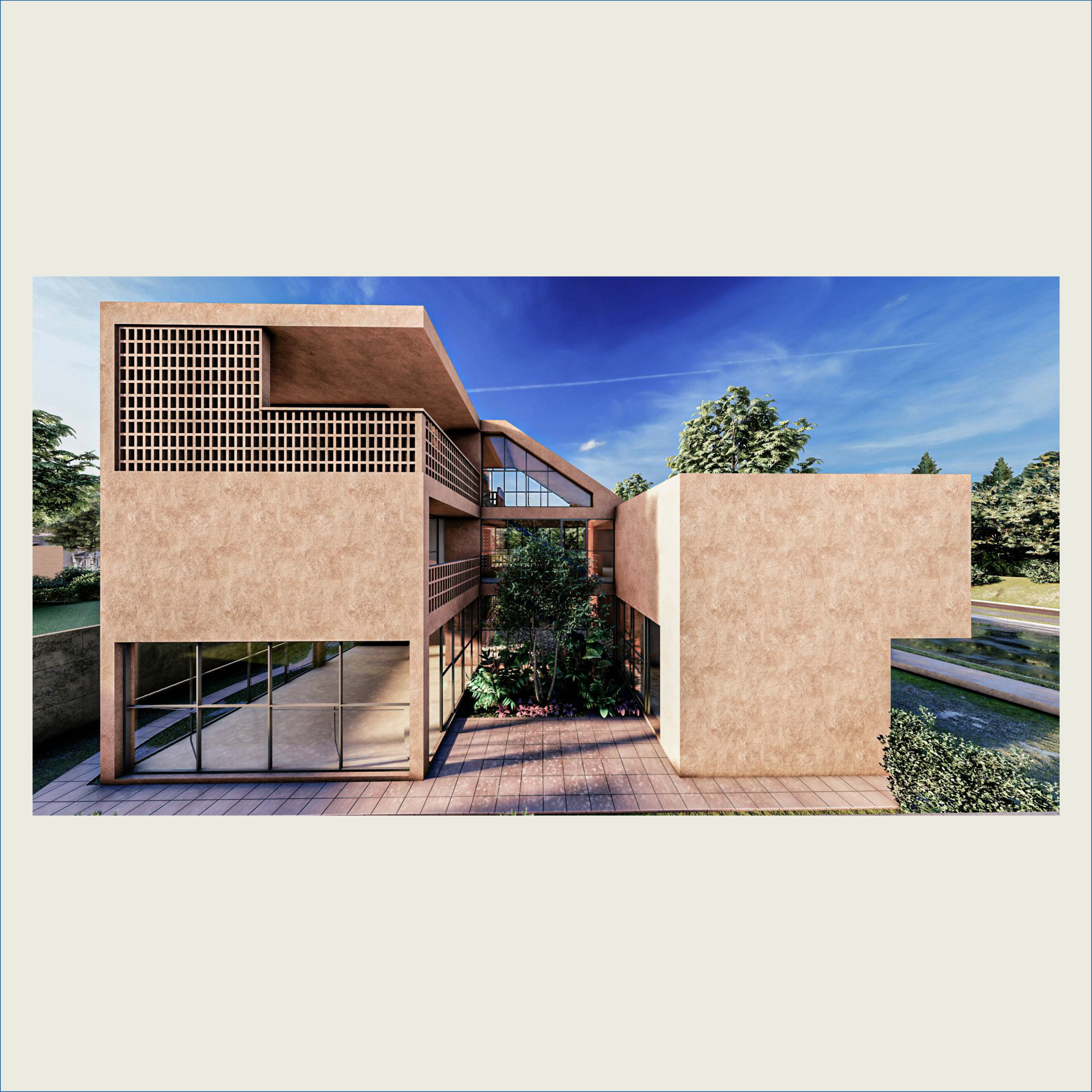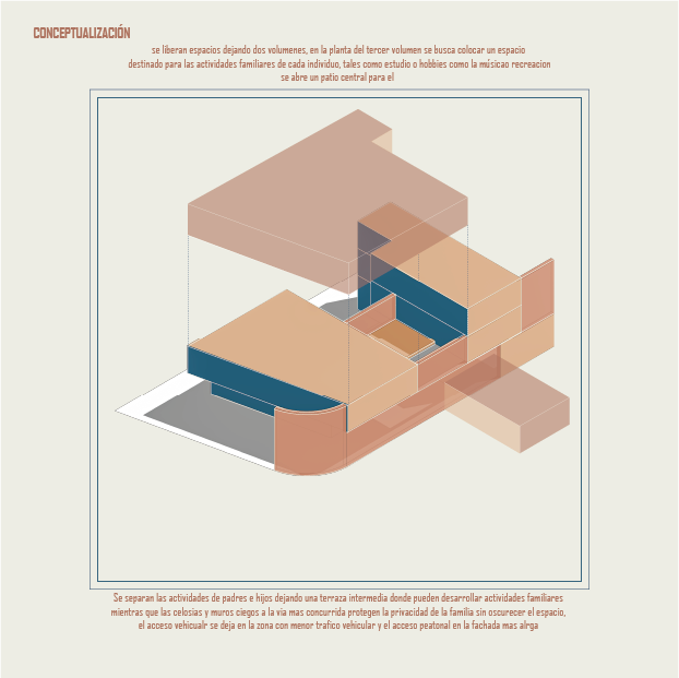 Este proyecto corresponde a una vivienda familiar diseñada con un enfoque contemporáneo. La estructura principal combina elementos de hormigón aparente de tono rojizo, lo que le otorga una estética cálida, robusta y moderna. El diseño arquitectónico aprovecha la interacción entre espacios abiertos y cerrados, creando una conexión fluida entre el interior y el exterior.