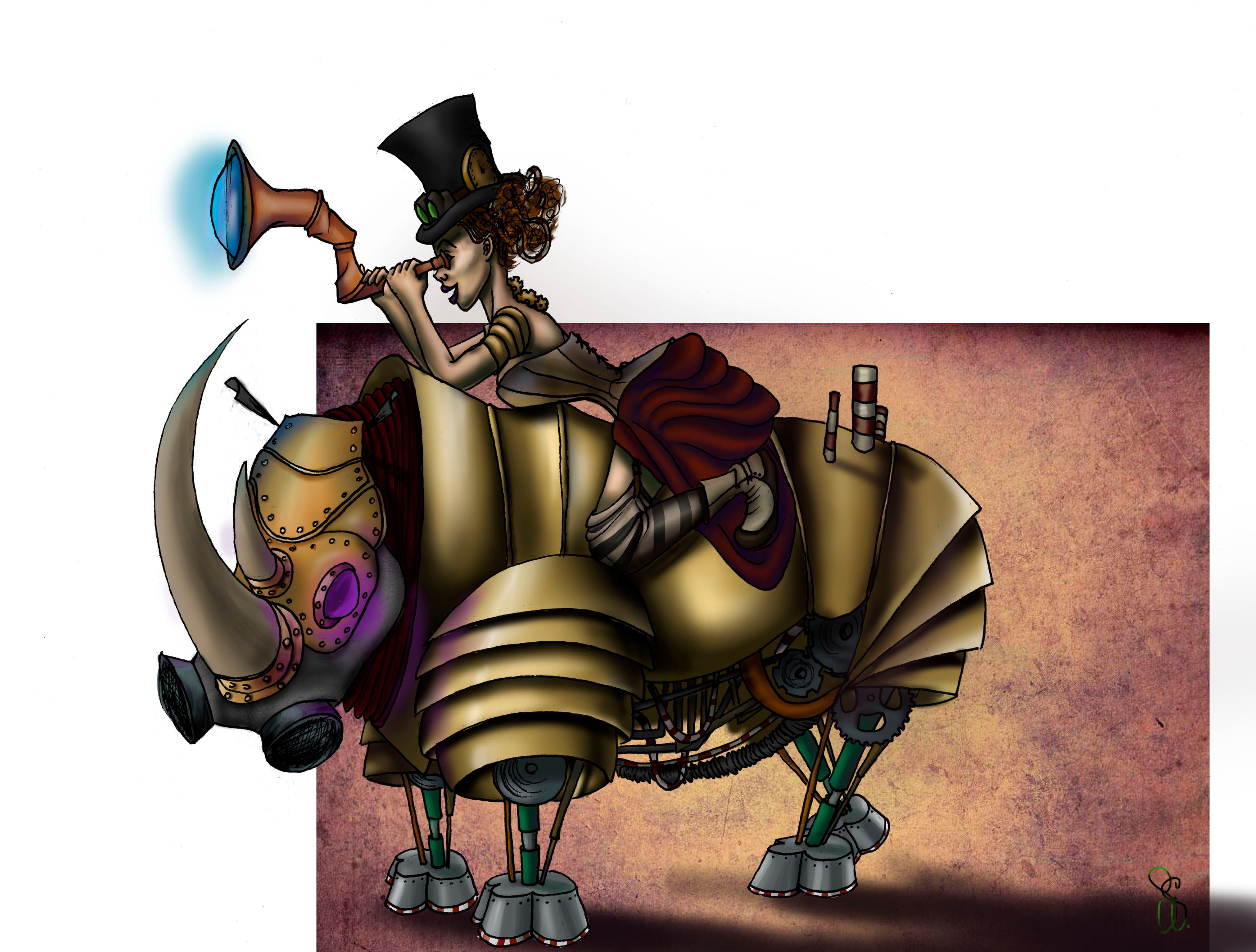 Steampunk woman & her rhino