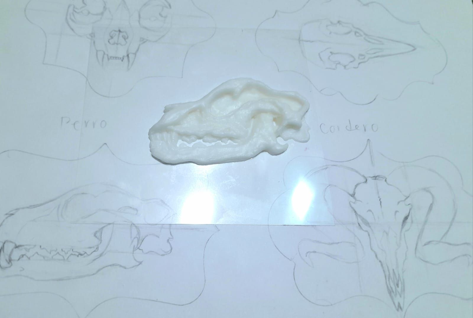 En esta ocasión, la idea surgió al estar bajando en mi feed de pinterest, en el cual se pueden apreciar distintos tópicos como postres, bocetos de dibujos a lo Tim Burton y tatuajes, entre otros; pero hubo una imagen que captó especialmente mi atención: un boceto de un cráneo gatuno que me gustó mucho, lo que me llevó a pensar que sería buena idea llevar distintos animalitos con ese concepto hacia una galleta así que comencé a bocetar en una hoja; primero copiando la forma del cortador y luego tomando distintas imágenes de referencia para cada esqueleto hasta quedar conforme con el resultado. Posteriormente, comencé a trabajar en crear un diseño 3D con royal icing de cada uno, junto con flores y unas hojas para poder pasarlos en seco a una galleta ya decorada con una base negra.