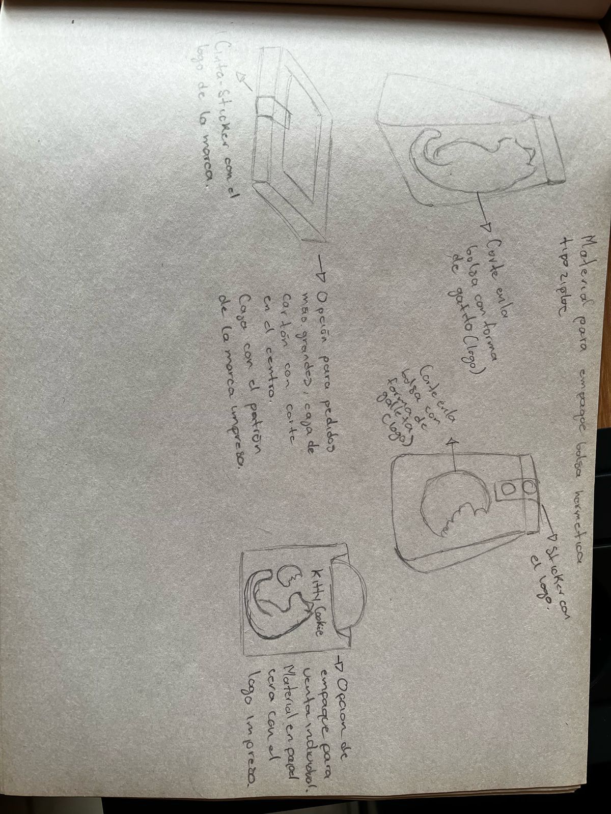 Lo que utilice fue una libreta para poder bocetar las ideas de empaque y agregar notas adicionales, también utilice mi computadora y programas de diseño.