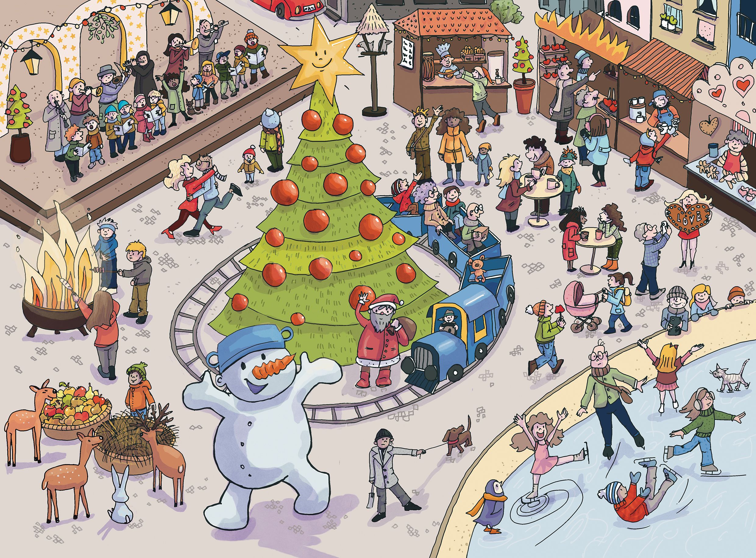 Mein Winter Wimmel-Markt als Weihnachtskarte für Familie und Freunde Danke für den schönen Kurs, es hat wirklich Spaß gemacht zu sehen wie ein Wimmelbild entsteht!