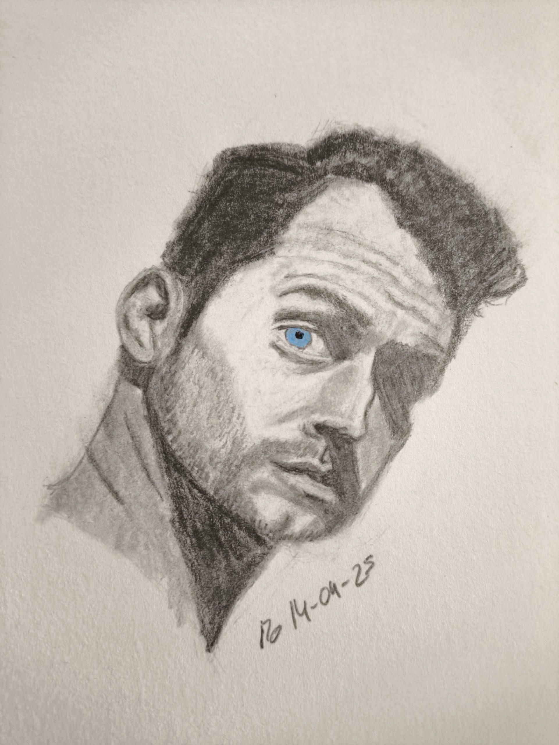 Final project of the course Artistic Portrait Drawing: Capture Authentic Expressions using the same photo of Henry Cavill as the course.