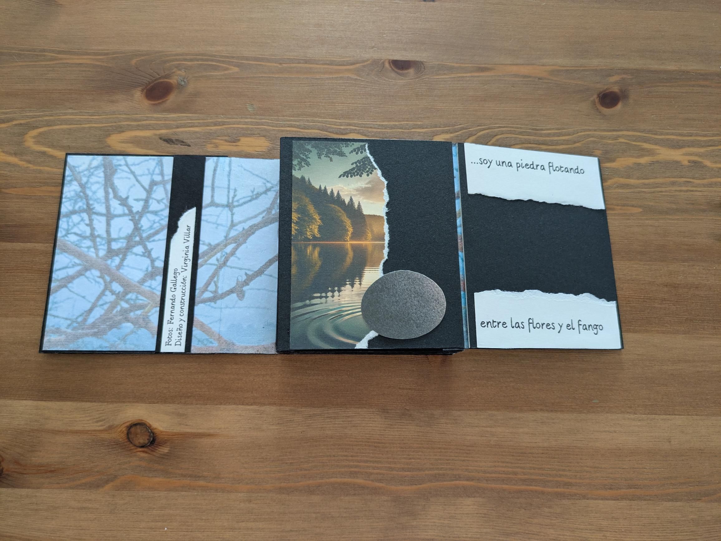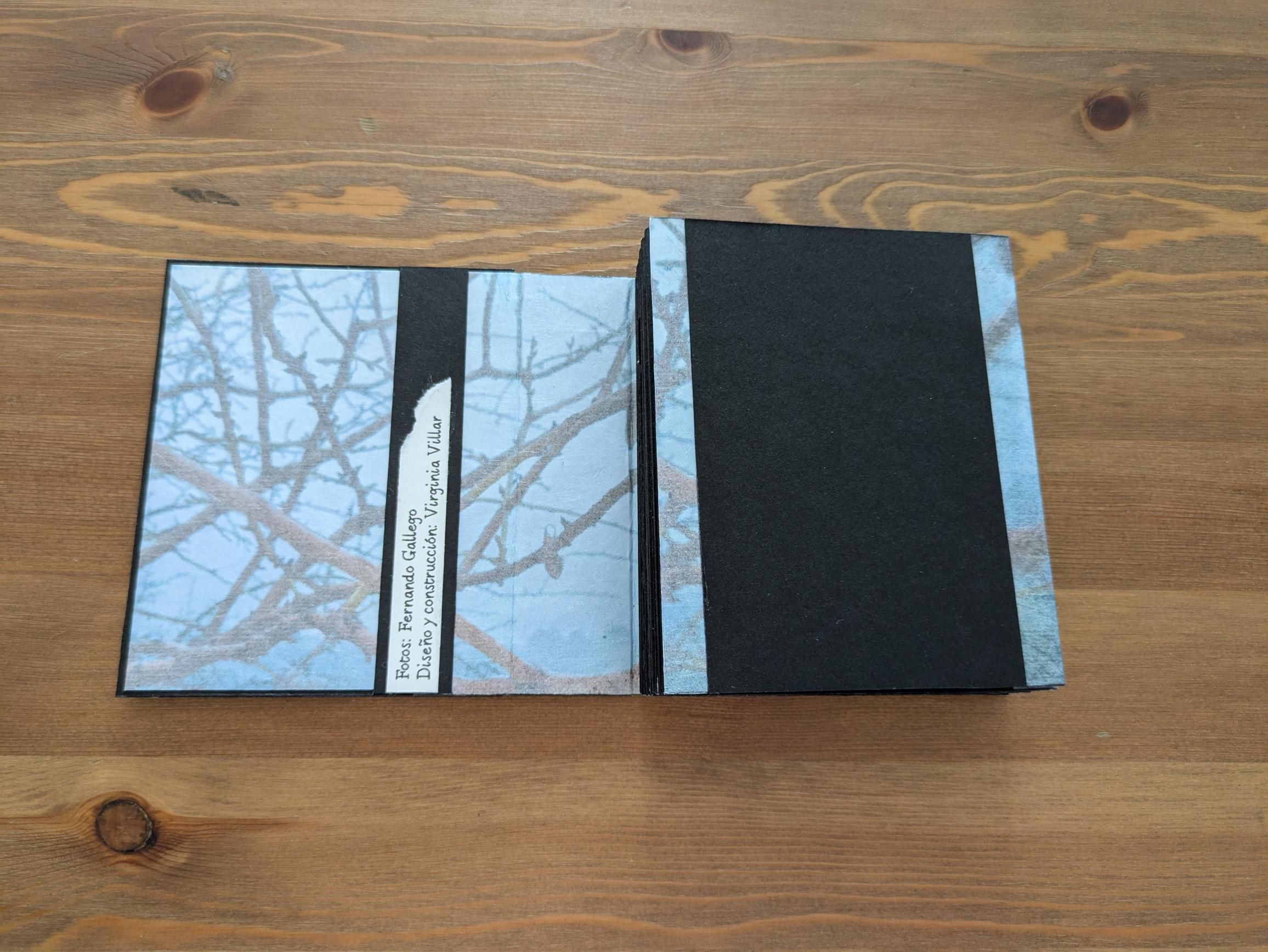 La idea surgió cuando un amigo me encargó encuadernar algunas de sus fotos. Me pareció muy bonito construir una concertina utilizando cartón negro y tyvek.