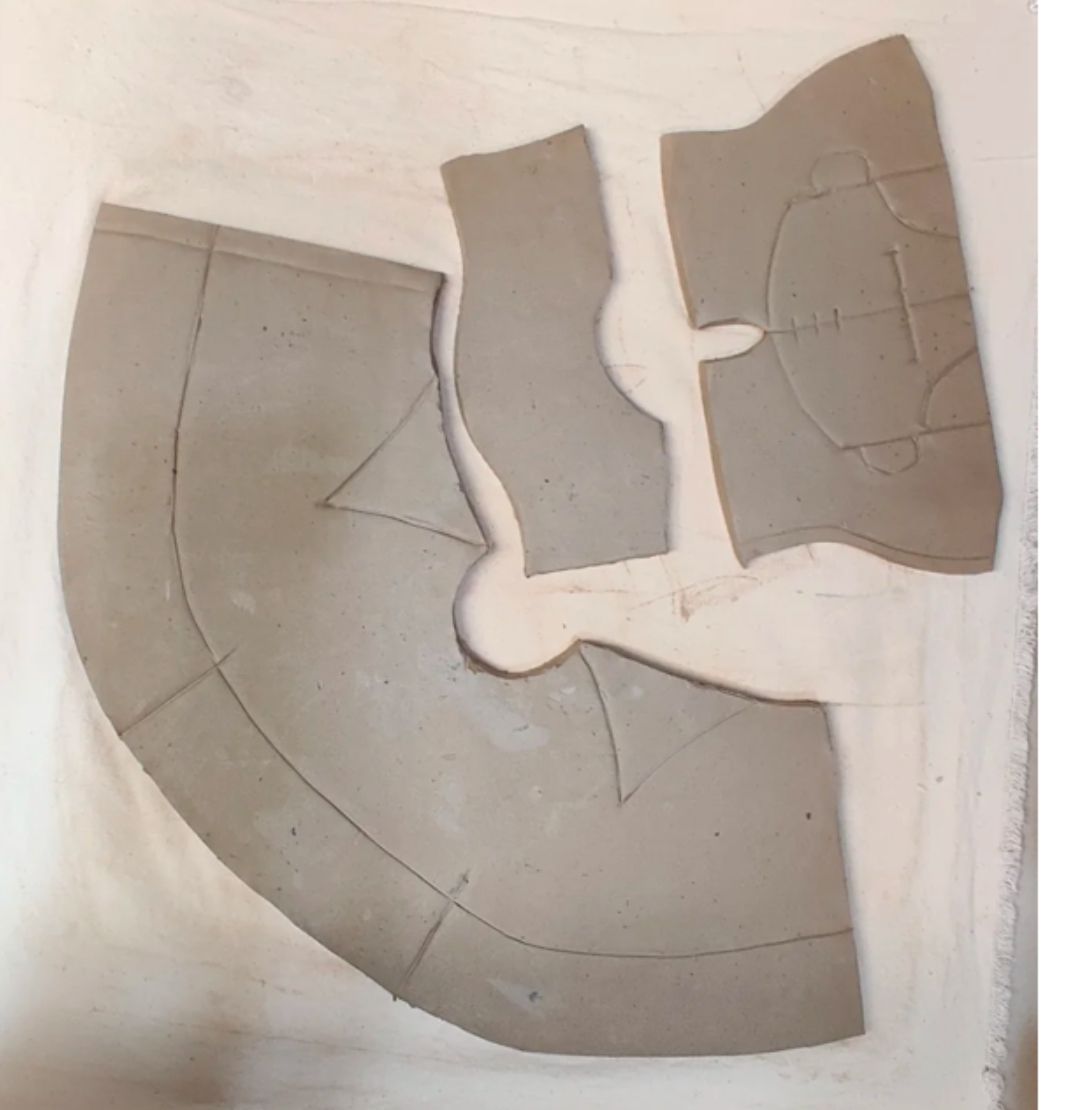 Acá estoy ya montando toda la pieza cada parte la forme desde cero y es hueca adentro para que se pueda quemar correctamente