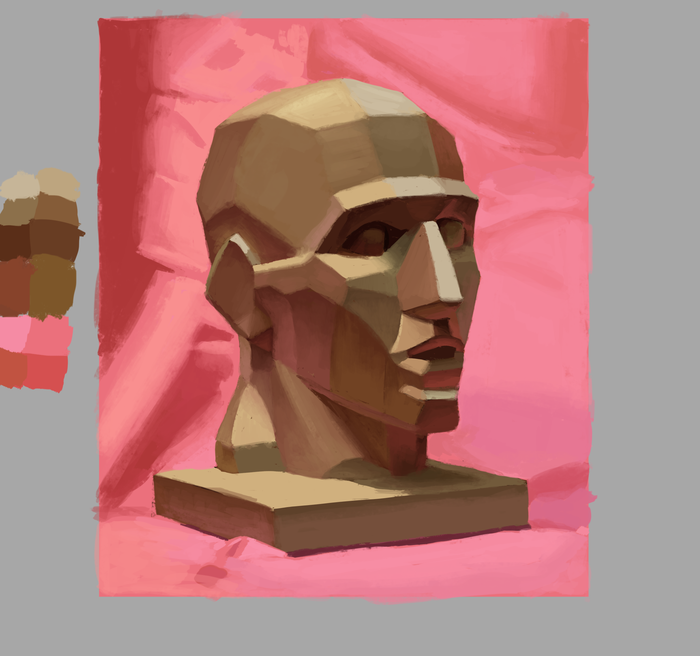 Then, once all the faces were done, I proceeded to add specularity. I was careful to apply bounce lights considering the objects surrounding the bust.