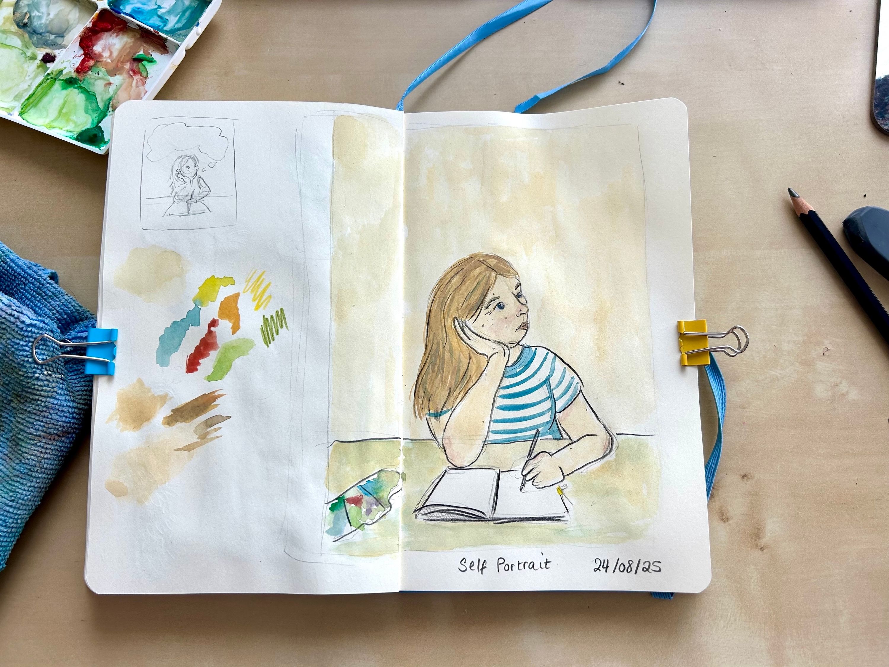 My first ever self-portrait. Quick sketch and painting, to encourage myself to let go and enjoy it more