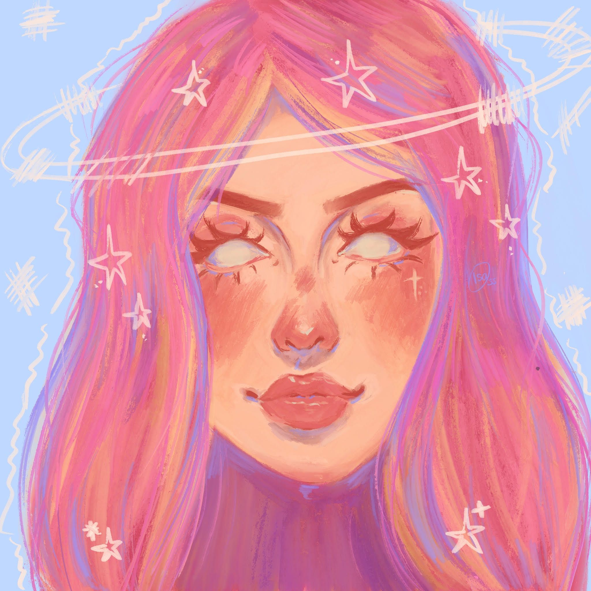 poco a poco estuve jugando con nuevos pinceles hasta que hice un rayón con uno no deseado, por corregir encontré al indicado (que hoy en día esta perdido en la cantidad absurda de pinceles que tengo) mezcle cosas que me gustan en un personaje, como el color del pelo o el estilo de los ojos y lo usual que hago en todos es el colorete en nariz y pómulos. juego con las luces y a medida que lo vaya viendo y me gusta le voy retocando cambios leves.