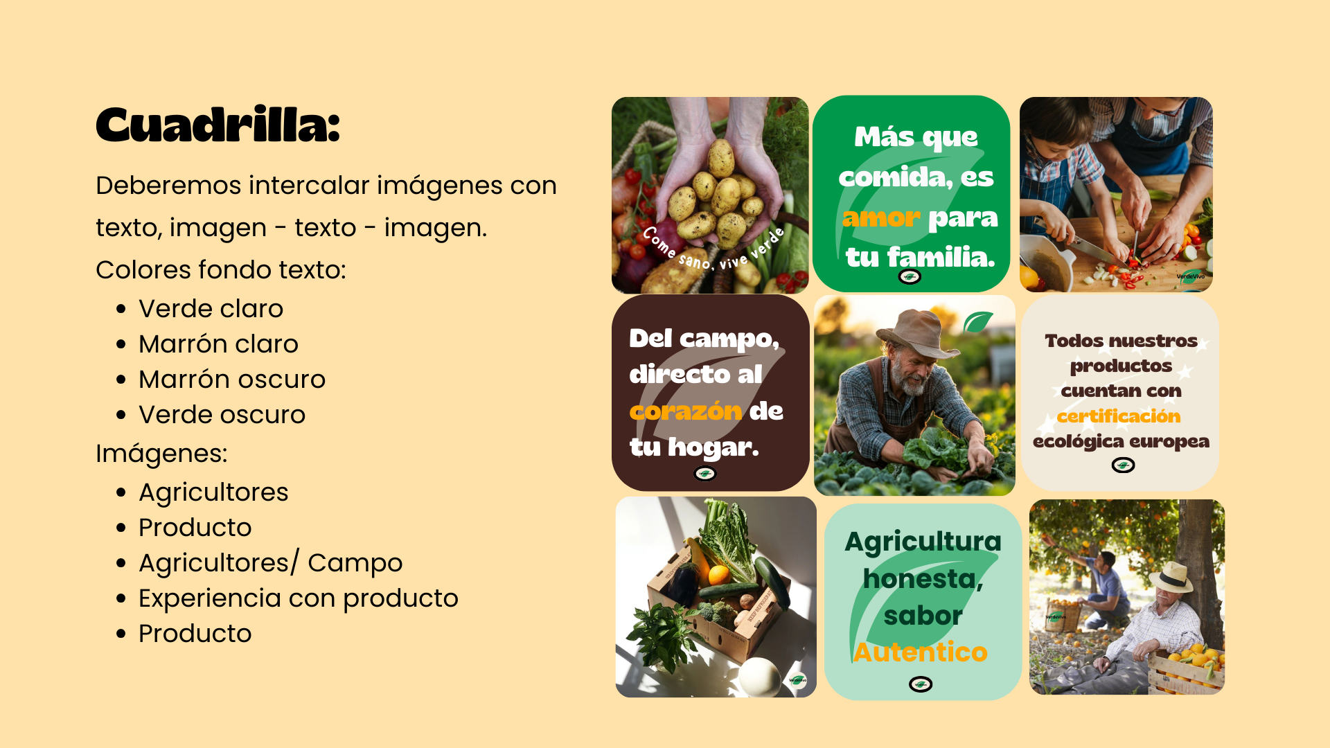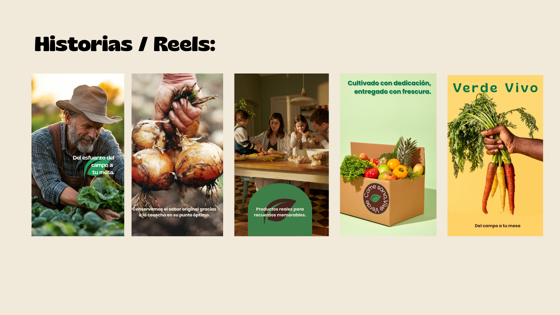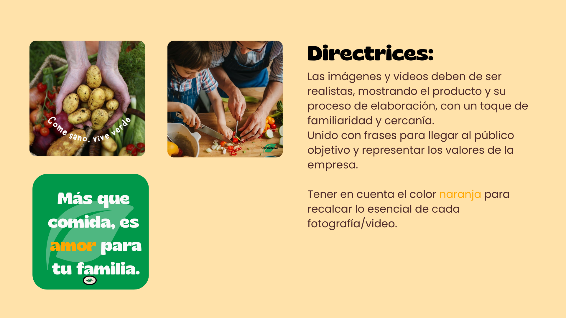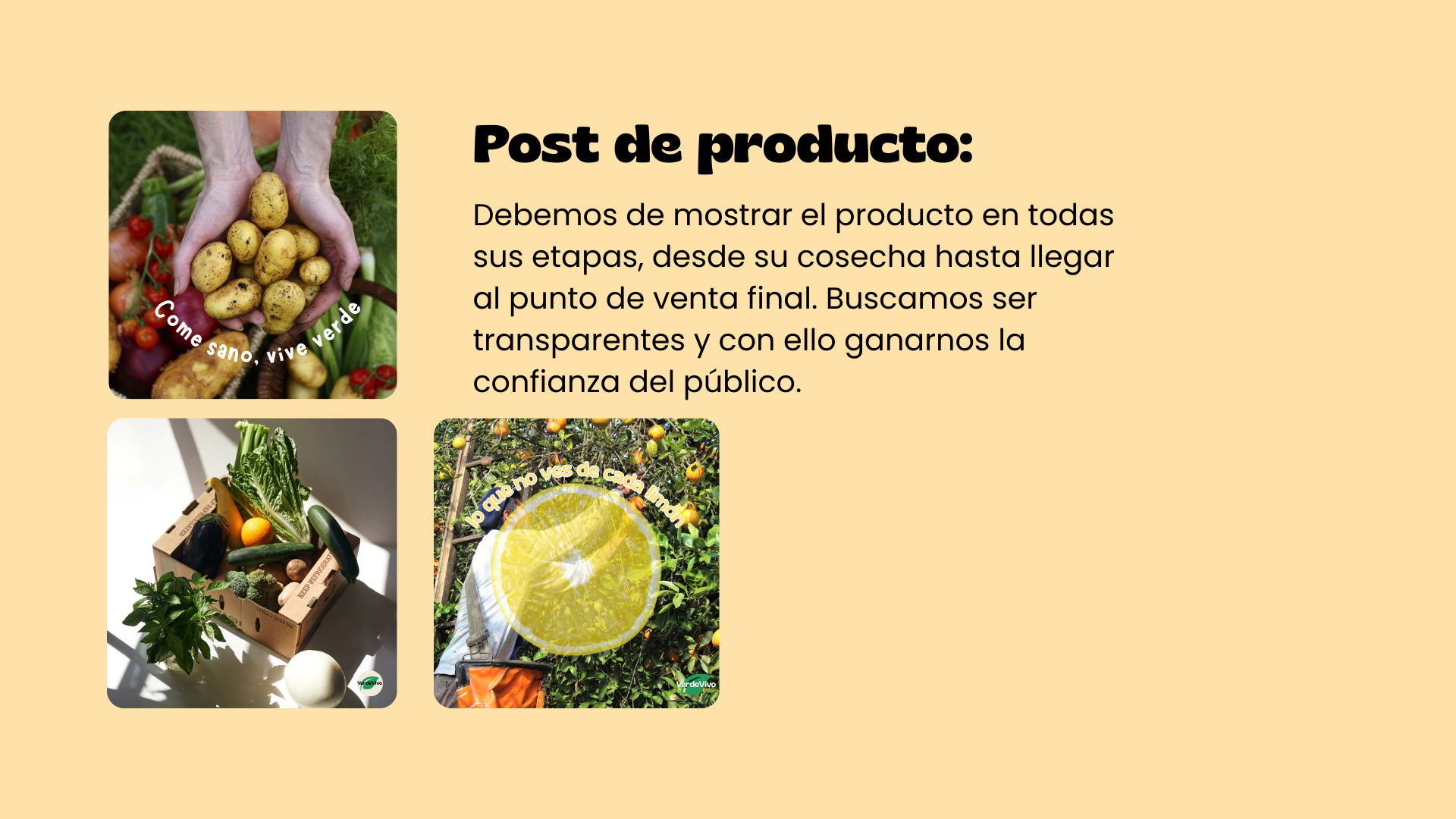 VerdeVivo es una marca española que produce y vende frutas, verduras y productos ecológicos certificados, con reparto a domicilio en cajas semanales. Su objetivo es fomentar el consumo responsable, apoyar a pequeños agricultores locales y reducir el uso de plásticos.