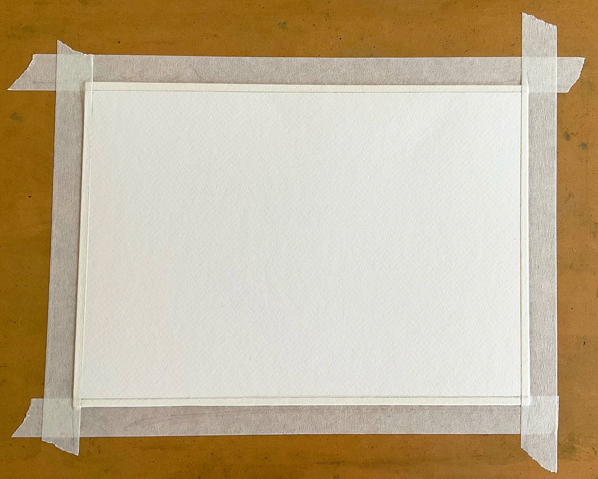 Krok 2: Oklejanie papieru akwarelowego taśmą