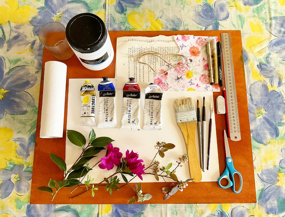 ● Acrylic paints - Alizarin crimson, Phthalo blue, white and yellow