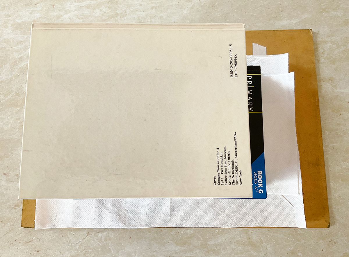 At this point, lay sheets of blank paper or paper towels on top of the artwork. Place a stack of heavy books on top of the blank papers or paper towels. Leave the artwork with the books on top of it for 24 hours.