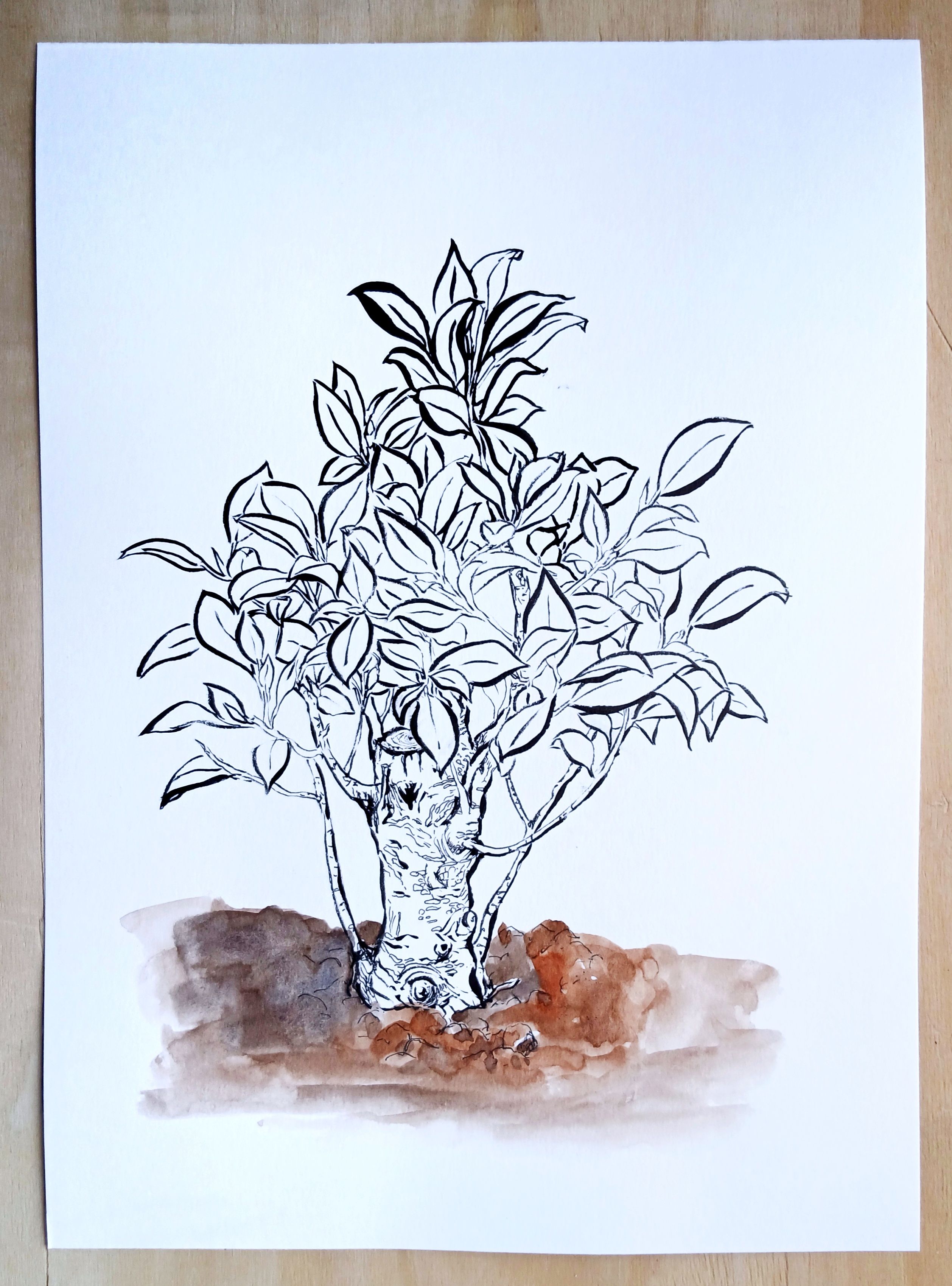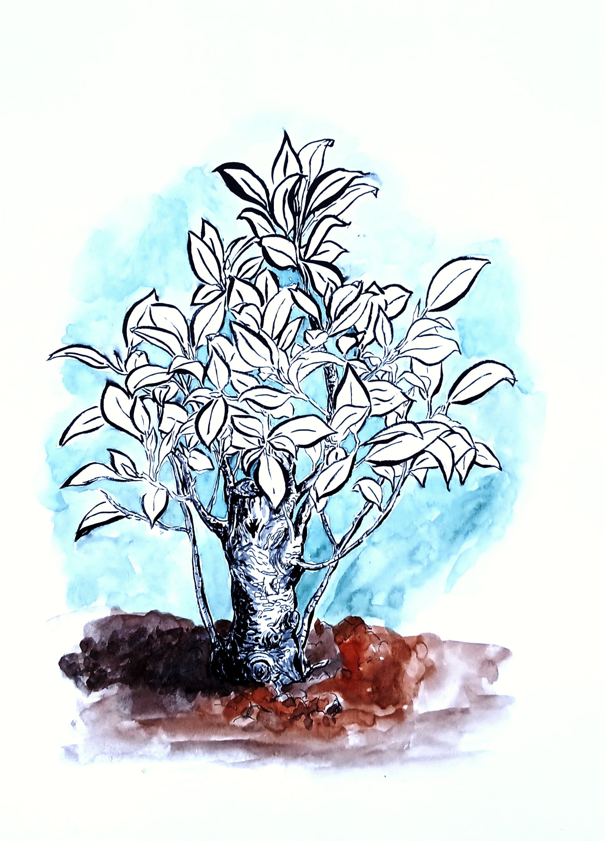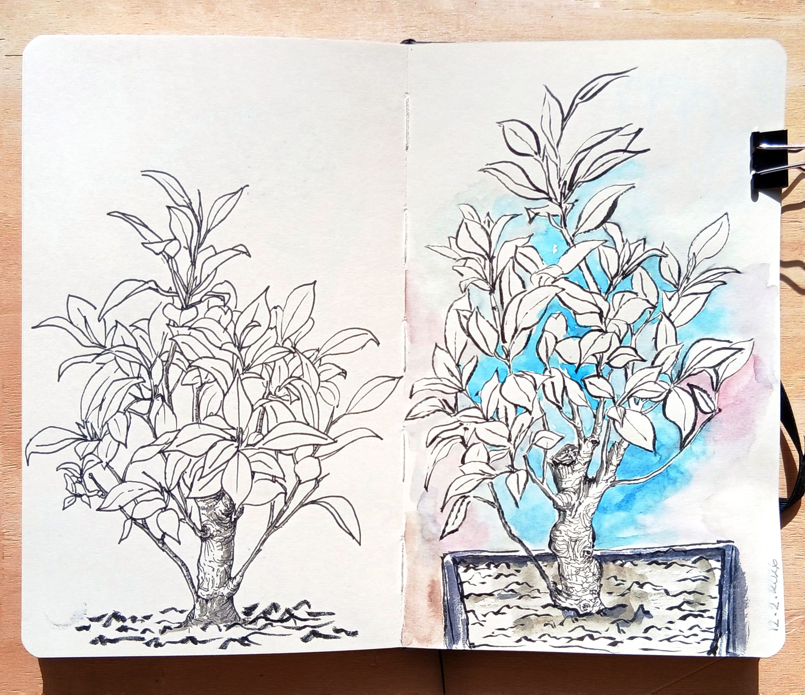 He seleccionado uno de los bocetos realizados durante el curso, el que representa un bonsai y he realizado algún dibujo más del mismo, añadiendo color con acuarela.