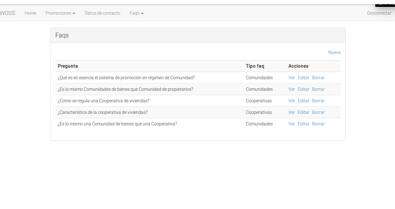 Desarrollo del Backoffice a medida de la web de Woss con plantilla responsive y adaptación del Frontoffice, con el framework Laravel 5.