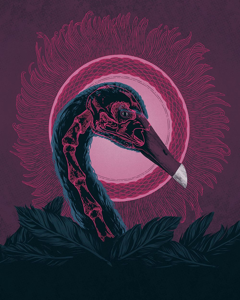 Plakat na imprezę z okazji premiery nowego projektu bloga Goliath Is[/url] . Ilustracja inspirowana jest piosenką „Black Swan” Obsidian , który dał specjalny [url=https://goliathisdead.com/]z okazji tego wydarzenia.