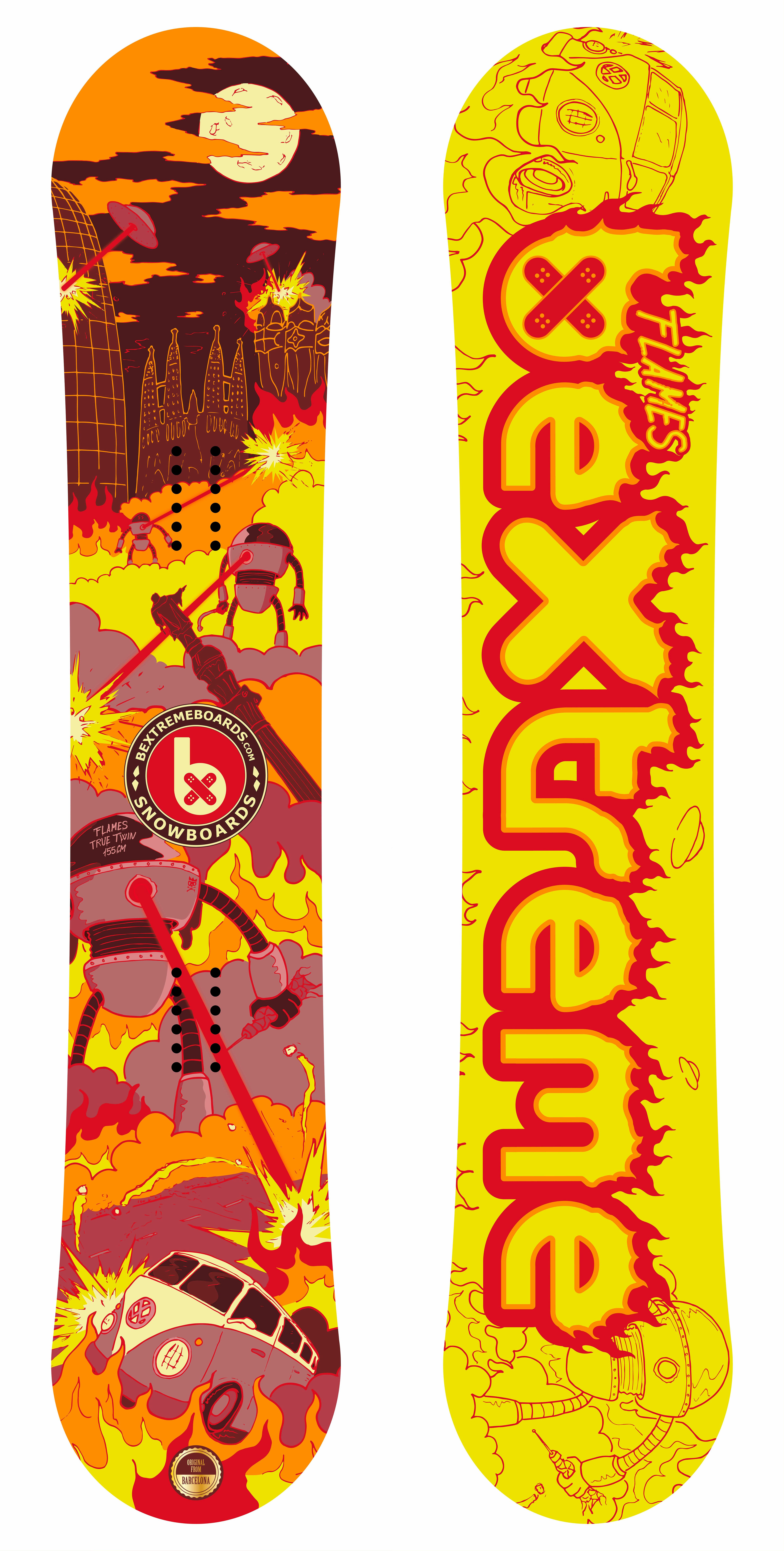 Diseño de gráficos para tablas de snowboard de la marca Bextreme.