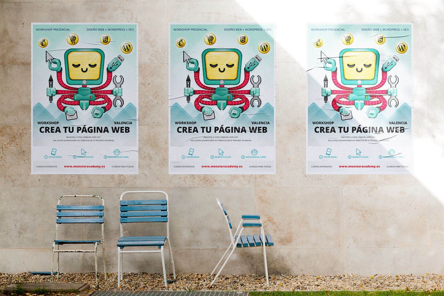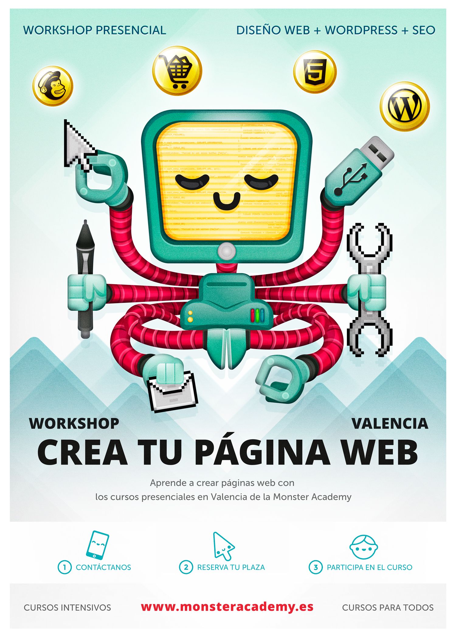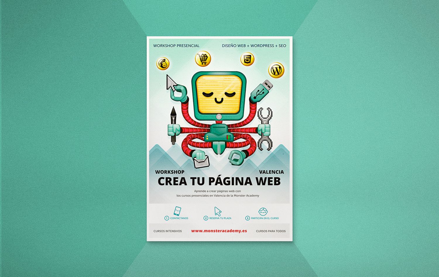 La agencia digital Estudio Andreoli nos contrató para realizar un poster para la promoción de un workshop de páginas web de la academia de diseño y desarrollo online MonsterA cademy.