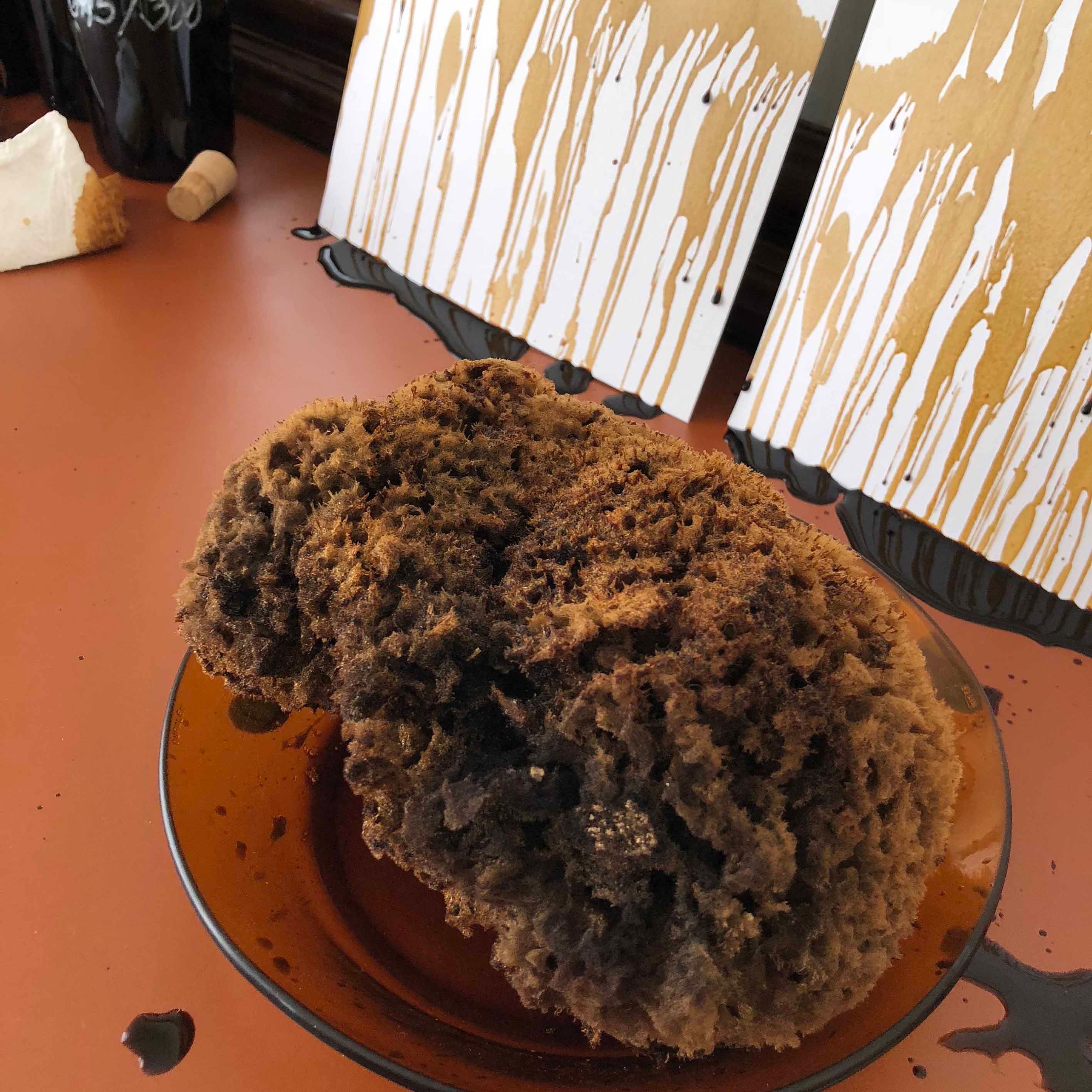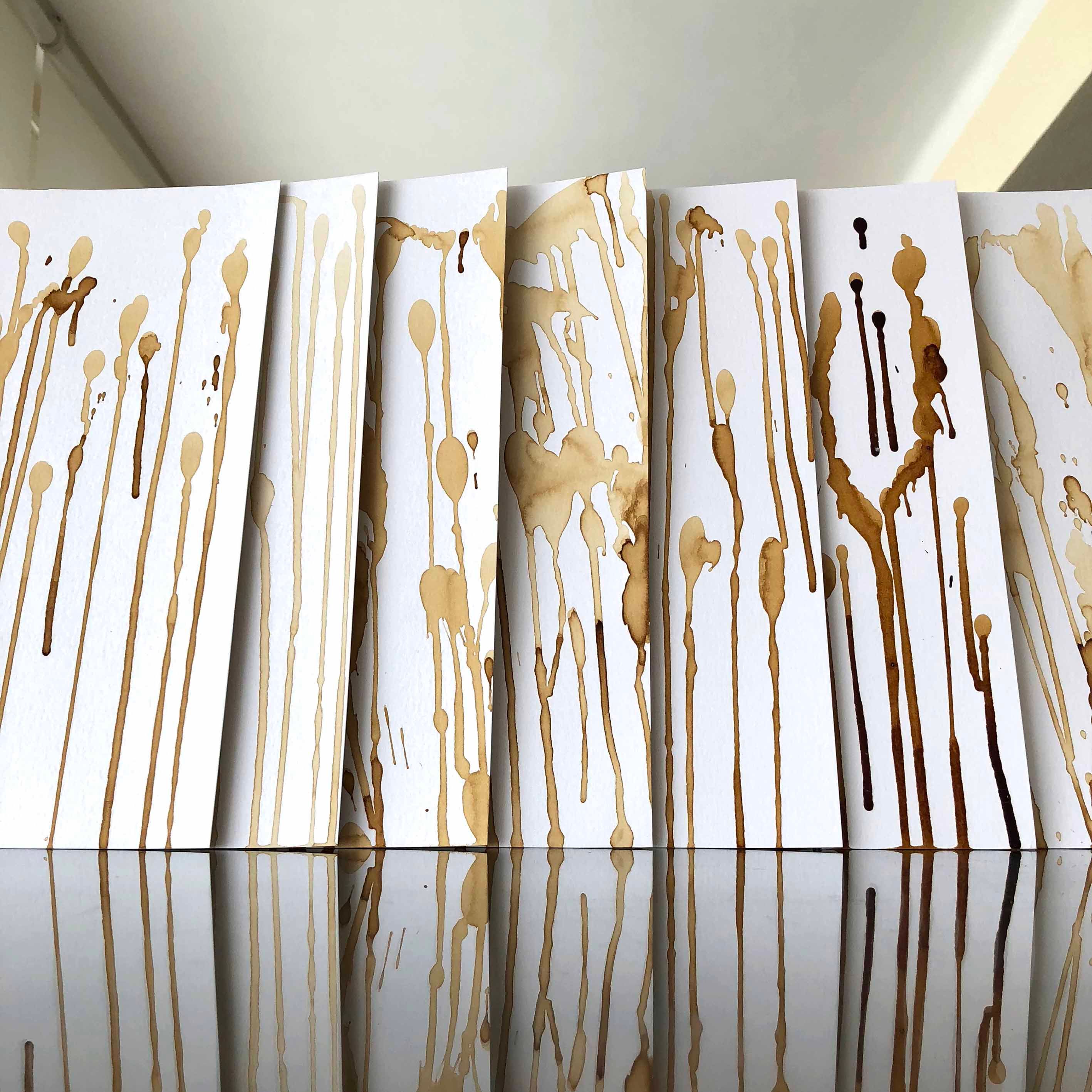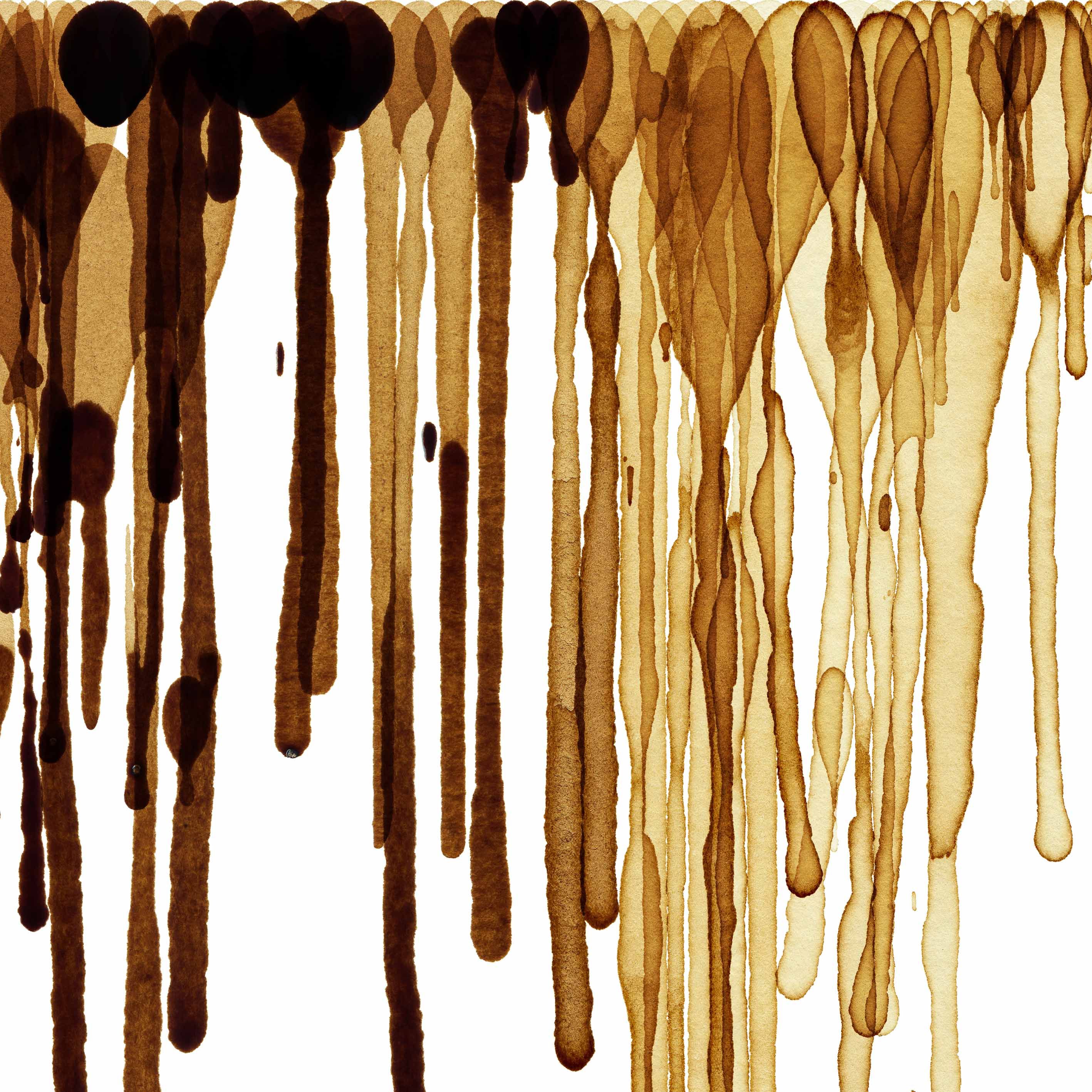 170 aligned hand-made stains of dripped coffee, made with a natural sponge and 3 different concentrations of coffee. Once dry, the selected prints are scanned individually at high resolution and digitally cleaned and overlapped.